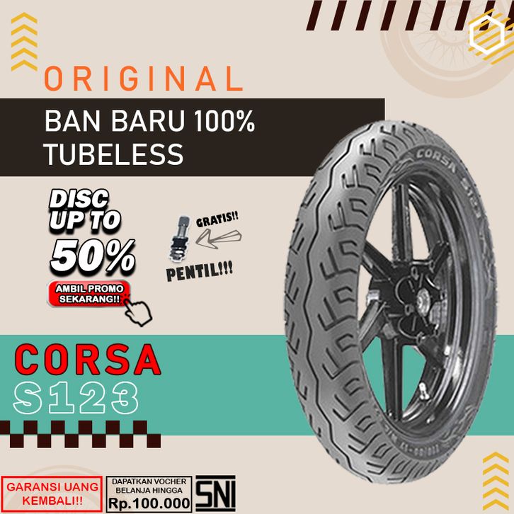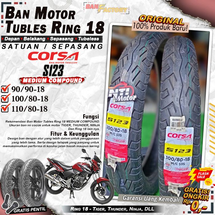 Ban Motor Tubeless Corsa S123 Ring 18 Ban Motor Ninja Tiger Thunder Tubles Depan Belakang Sepasang Ring 18