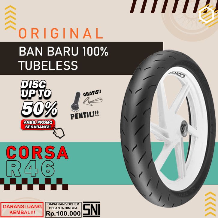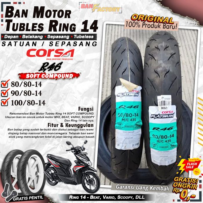 Ban Motor Matic Tubeless Corsa R46 Ring 14 Ban Motor Beat Vario Scoopy Tubles Depan Belakang Sepasang Ring 14