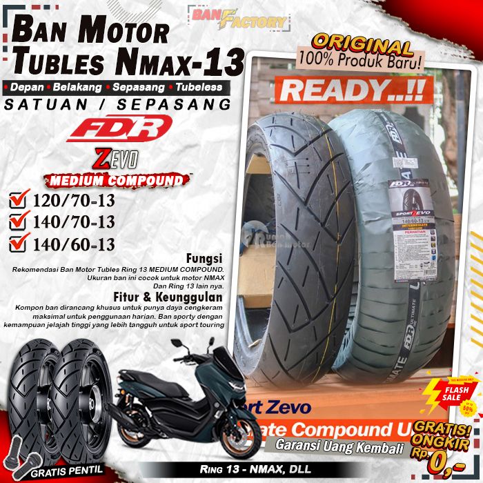 Ban Motor Matic Tubeless FDR Zevo Ring 13 Ban Motor Nmax PCX Tubles Depan Belakang Sepasang Ring 13