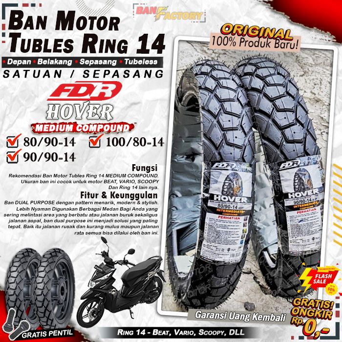 Ban Motor Matic Tubeless FDR Hover Ring 14 Ban Motor Beat Vario Scoopy Tubles Depan Belakang Sepasang Ring 14