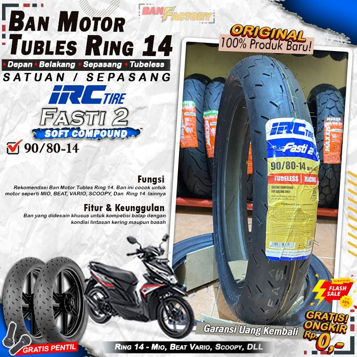 Ban Motor Matic Tubeless IRC Fasti 2 Ring 14 Ban Motor Beat Vario Scoopy Tubles Depan Belakang Sepasang Ring 14