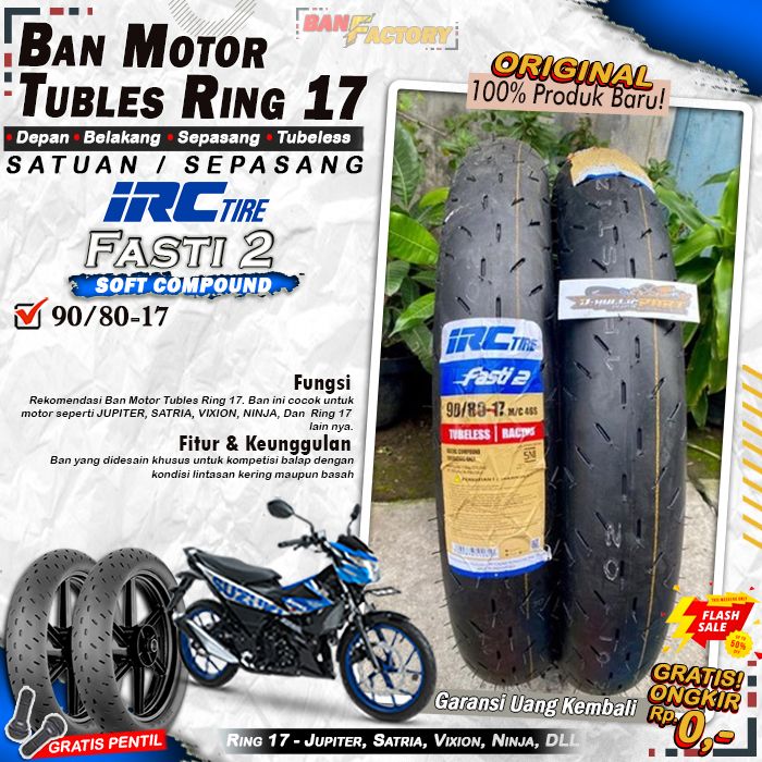 Ban Motor Tubeless IRC Fasti 2 Ring 17 Ban Motor Ninja Vixion Satria Supra Tubles Depan Belakang Sepasang Ring 17