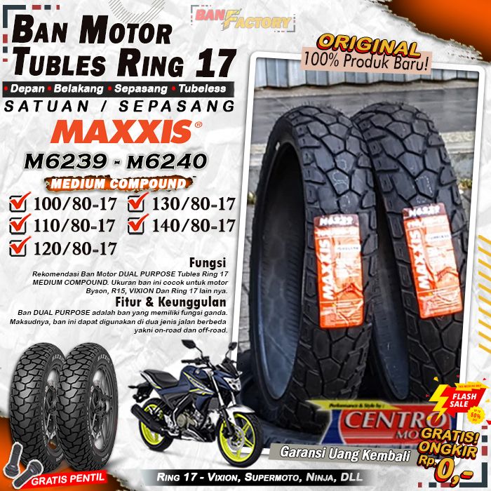 Ban Motor Tubeless Maxxis 6239 6340 Ring 17 Ban Motor Vixion Satria Supra Jupiter Tubles Depan Belakang Sepasang Ring 17