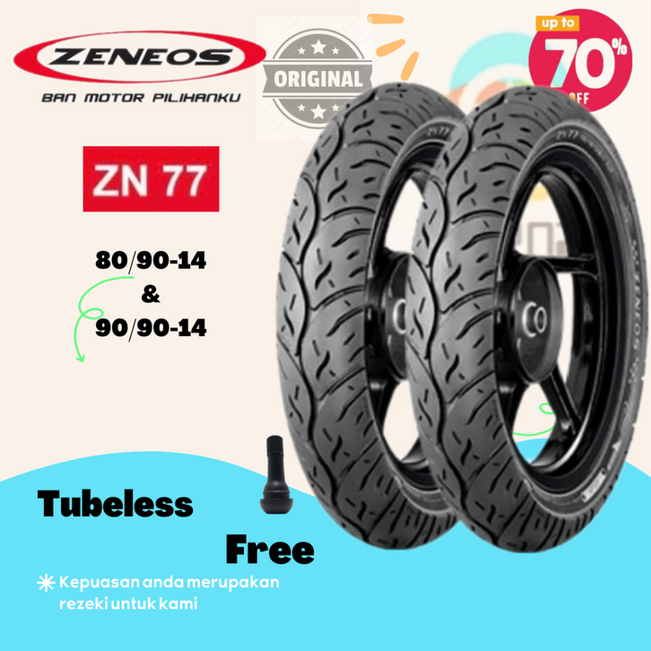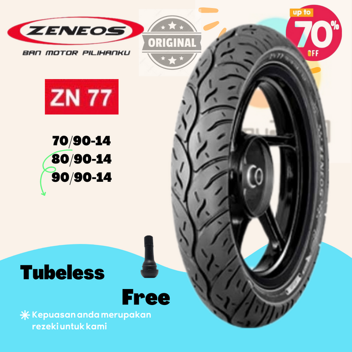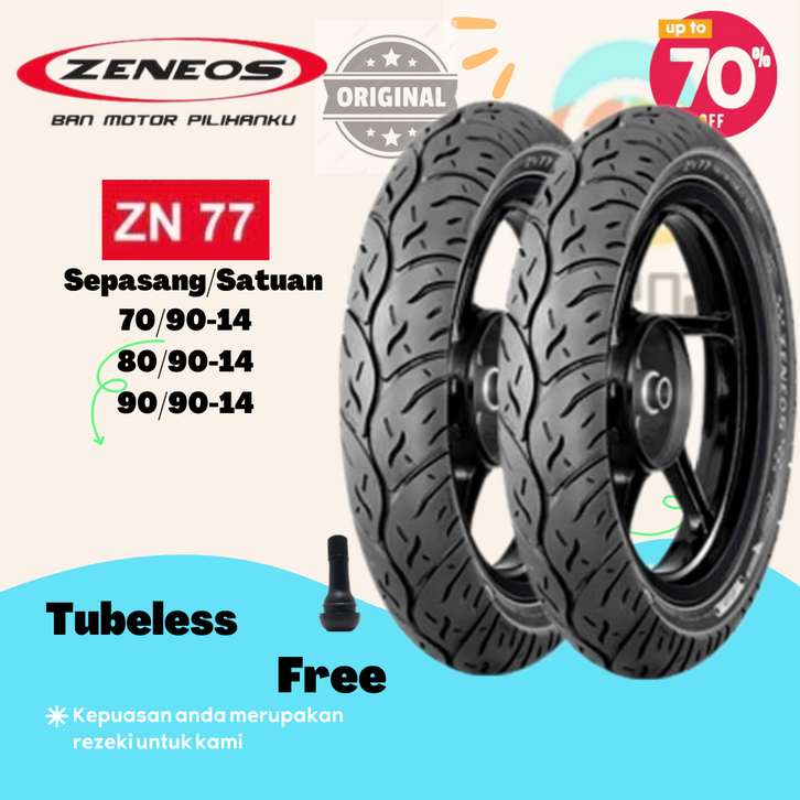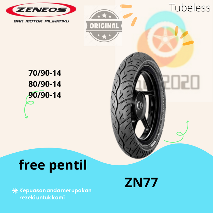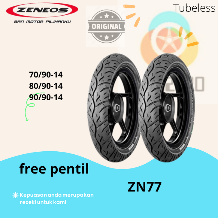 Sepasang/Satuan Ban Zeneos Ring 14 Zn77 70/90 80/90 90/90 Motor Tubeless Beat Vario Mio Genio Depan/Belakang