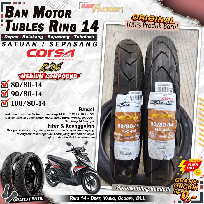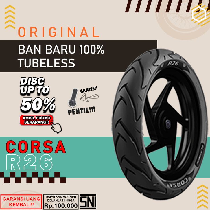 Ban Motor Matic Tubeless Corsa R26 Ring 14 Ban Motor Beat Vario Scoopy PCX Aerox Tubles Depan Belakang Sepasang Ring 14
