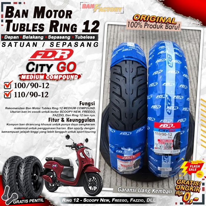 Ban Motor Matic Tubeless FDR City Go Ring 12 Ban Motor Scoopy FreeGo Fazzio Tubles Depan Belakang Sepasang Ring 12