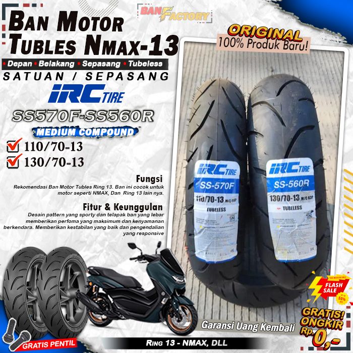 Ban Motor Matic Tubeless IRC SS570F SS560R Ring 13 Ban Motor Nmax PCX Tubles Depan Belakang Sepasang Ring 13
