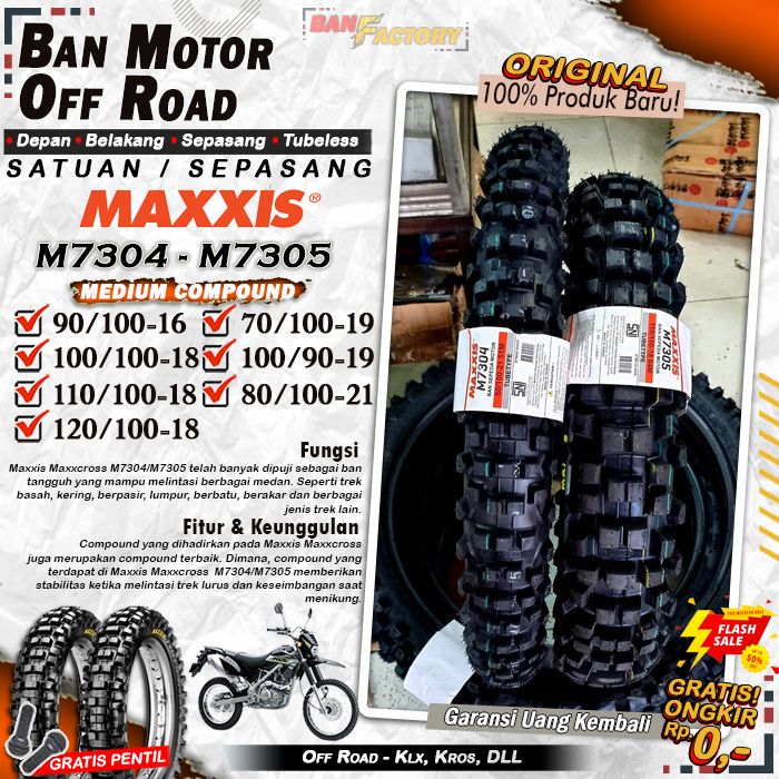 Ban Motor Non Tubeless Depan Belakang Trail Cros Kros KLX Maxxis M7304 M7305 Ring 16 18 19 21 Tube Type