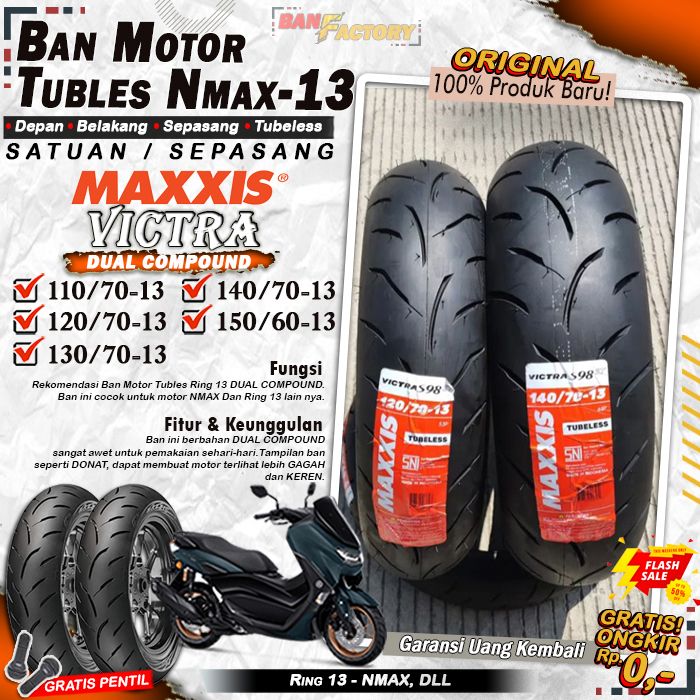Ban Motor Matic Tubeless Maxxis Victra Ring 13 Ban Motor Nmax PCX Tubles Depan Belakang Sepasang Ring 13