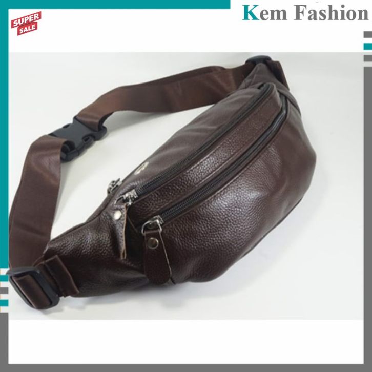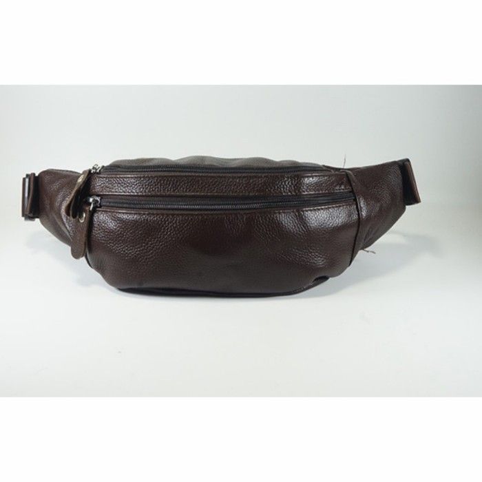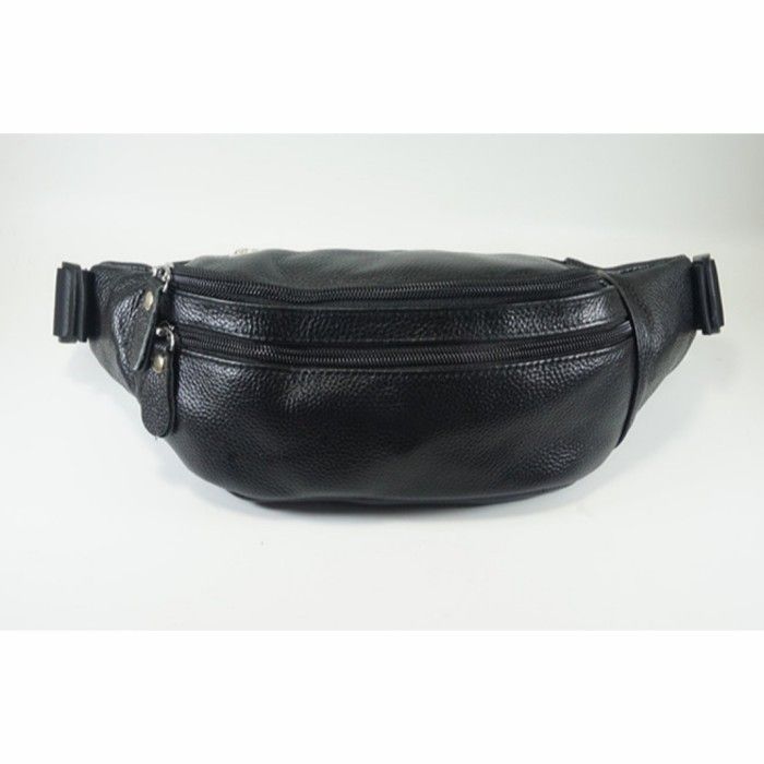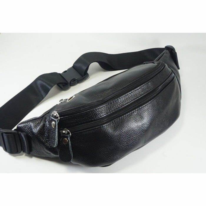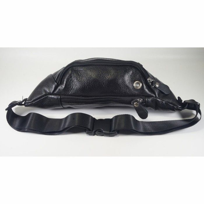 Tas Pinggang Waist Bag Kulit Asli Import Pria Waistbag Polos Selempang - Hitam