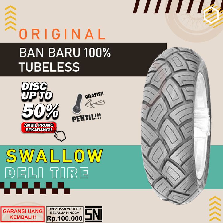 Ban Motor Matic Tubeless Swallow Deli Tire Ring 10 Ban Motor Vespa Tubles Depan Belakang Sepasang Ring 11