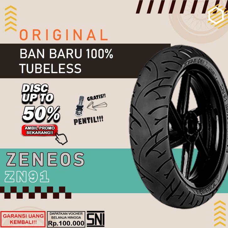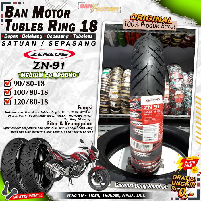 Ban Motor Tubeless Zeneos Zn91 Ring 18 Ban Motor Ninja Tiger Thunder Tubles Depan Belakang Sepasang Ring 18