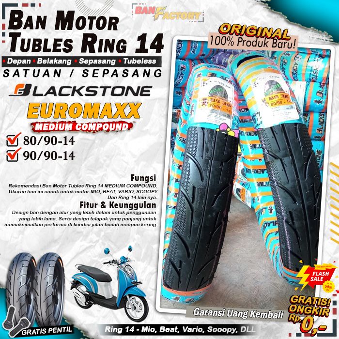 Ban Motor Matic Tubeless Blackstone Euromax Ring 14 Ban Motor Beat Vario Scoopy Tubles Depan Belakang Sepasang Ring 14