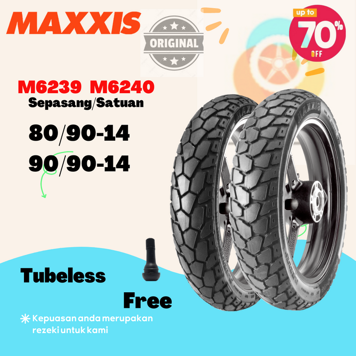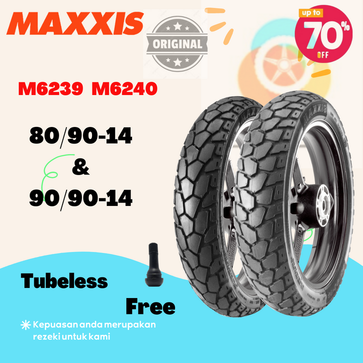 Ban Tubeless Motor Matic Maxxis Ring 14 M6239 & M6240 Beat Vario Scoopy Ring 14 Sepasang/1an Depan/Belakang Dual Purpose