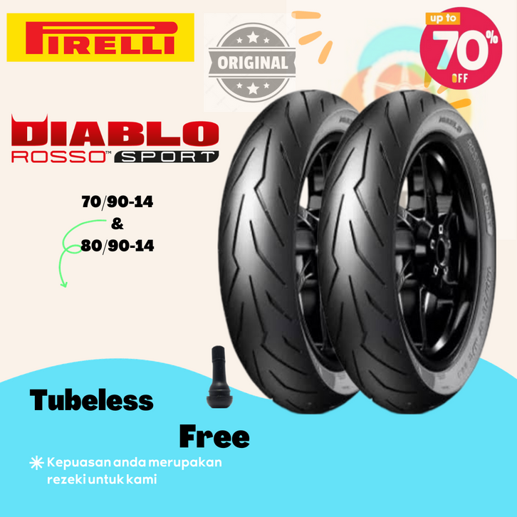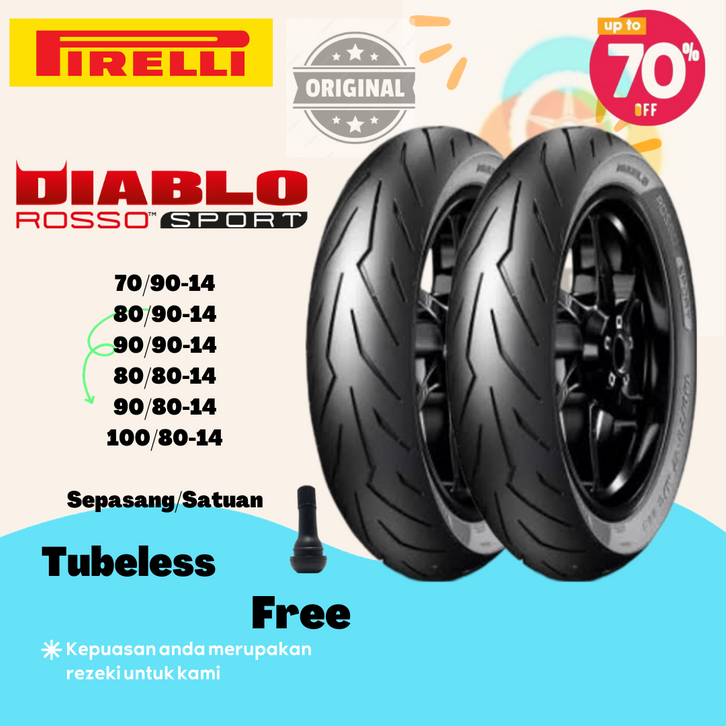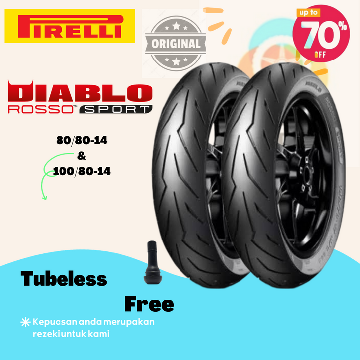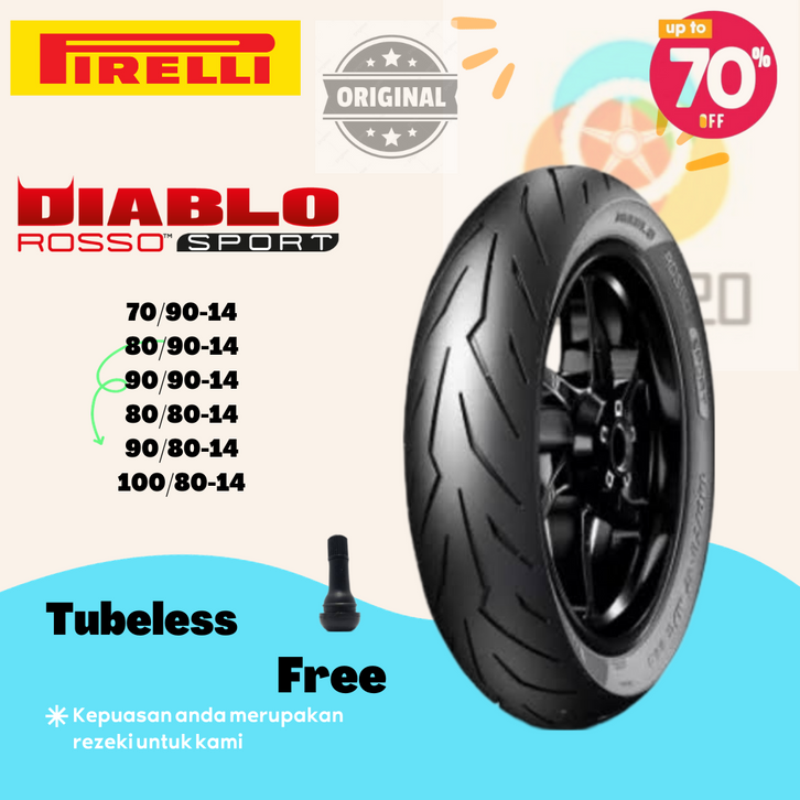 Ban Motor Matic Ring 14 Pirelli Diablo Rosso Sport Beat Vario Mio Genio 70 90,80 90,90 90,80 80,90 80,100 80 Tubeless