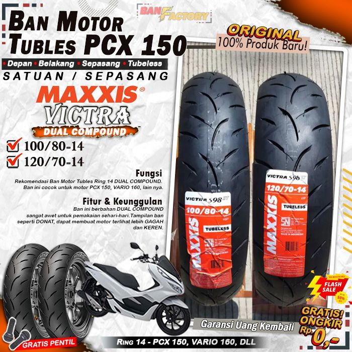 Sepasang Ban Motor Tubles PCX 150 VARIO 160 MAXXIS VICTRA Ring 14 Ban Motor Tubeless Depan Belakang PCX Ring 14