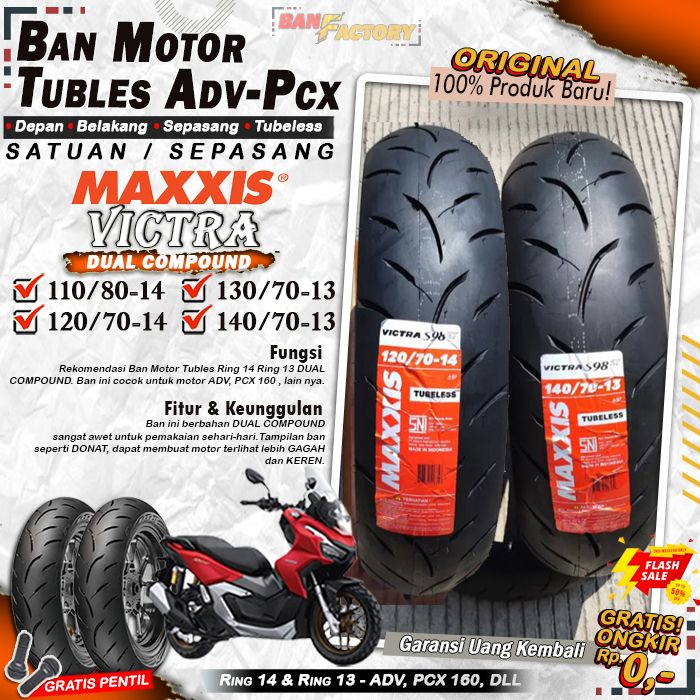 Sepasang Ban Motor Tubles ADV PCX 160 MAXXIS VICTRA Ring 14 Ring 13 Ban Motor Depan Belakang ADV PCX Ring 14