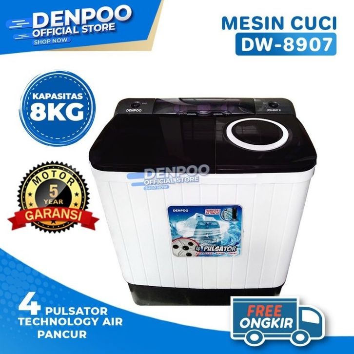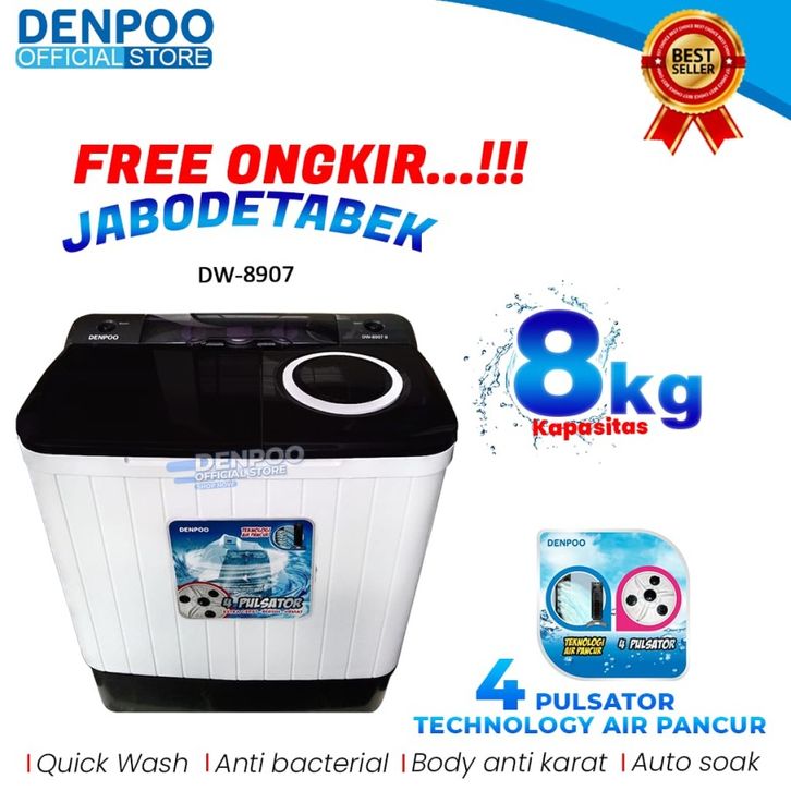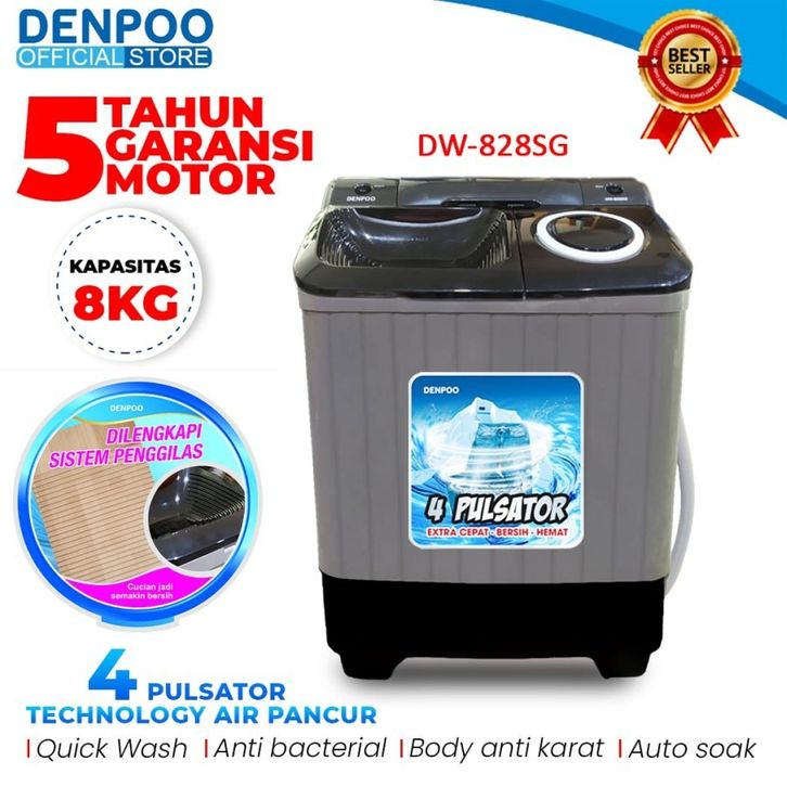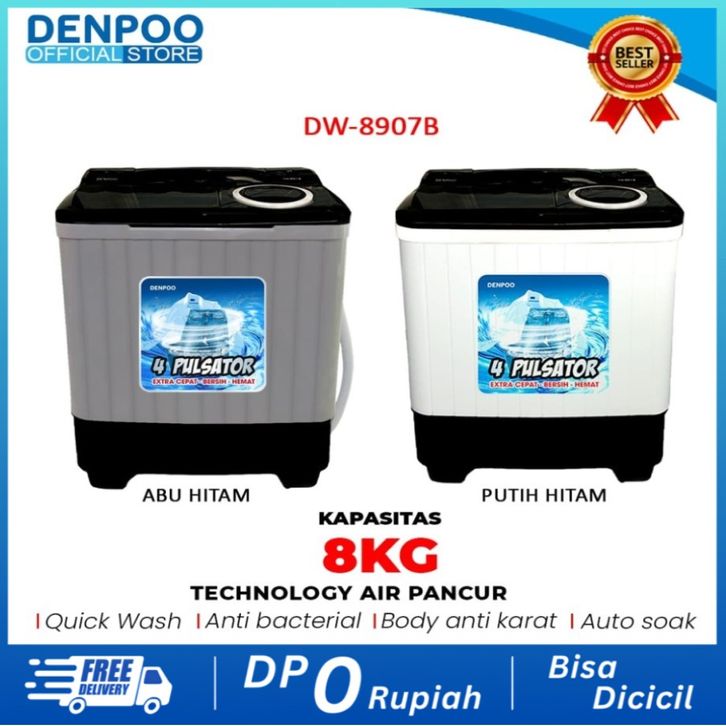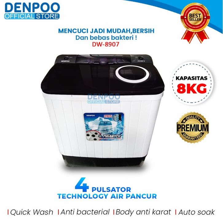 Hot promo Denpoo Mesin Cuci Portable Modern Berkualitas Smart Terbaru 2024 1/2 Tabung 10/8 Kg Jet spin Sharp Polytron Lg
