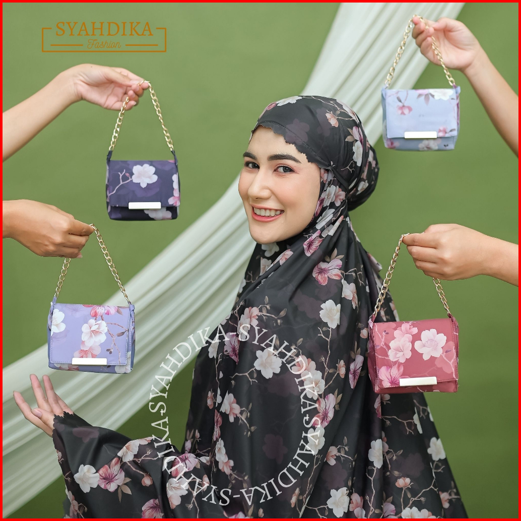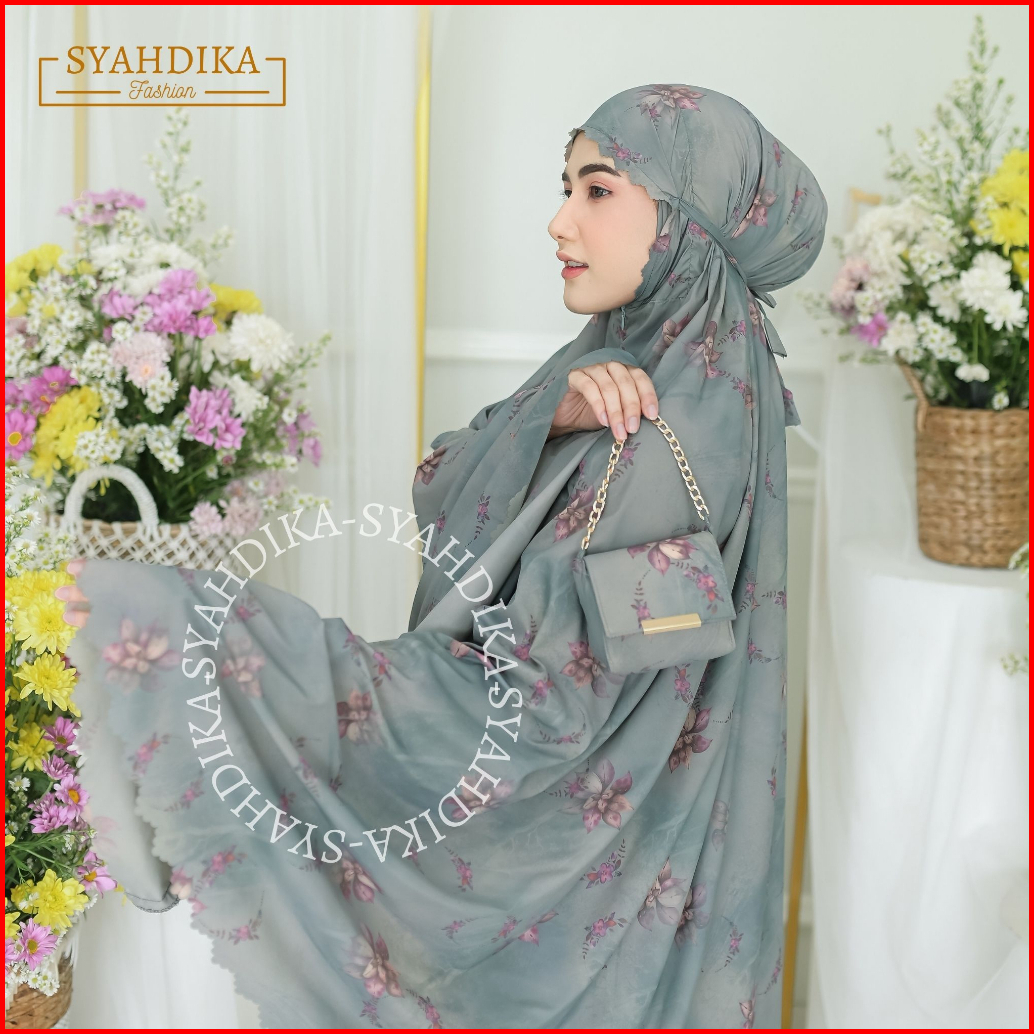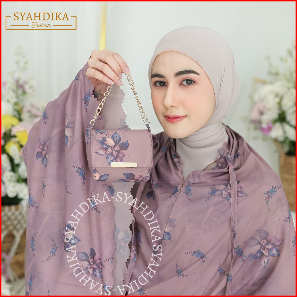 Syahdika - Mukena Travel Mini Parasut Premium Korea 2in1 Motif Orchid Laser Cut Free Sejadah
