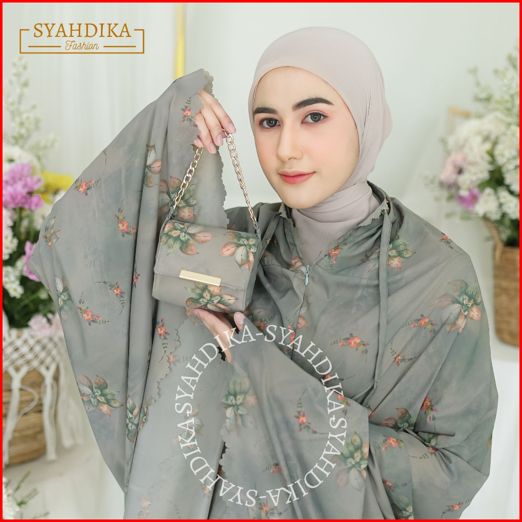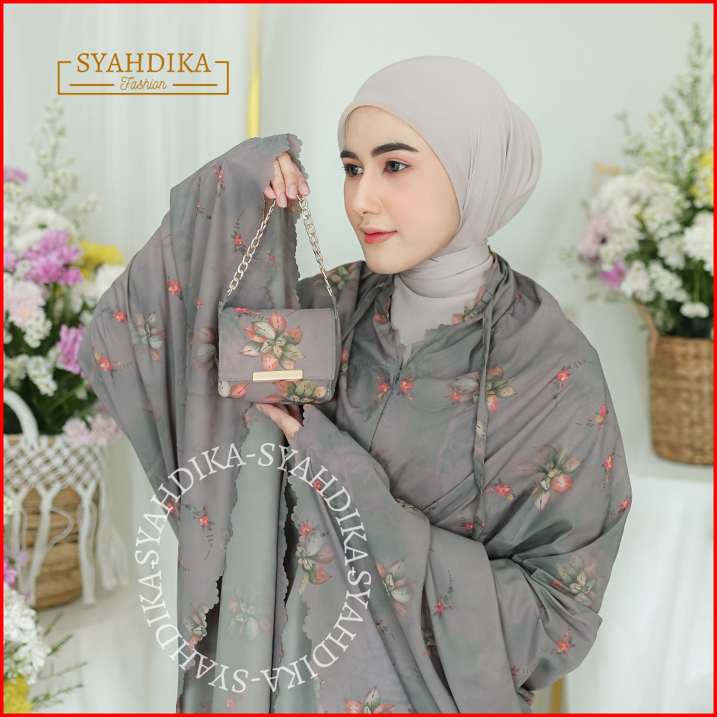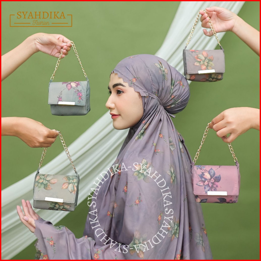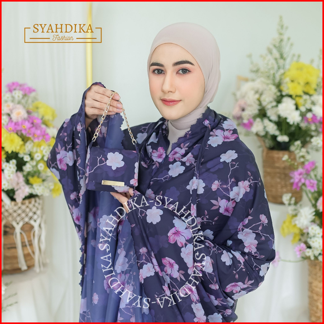Syahdika - Mukena Travel Mini Parasut Premium Korea 2in1 Motif Orchid Laser Cut Free Sejadah