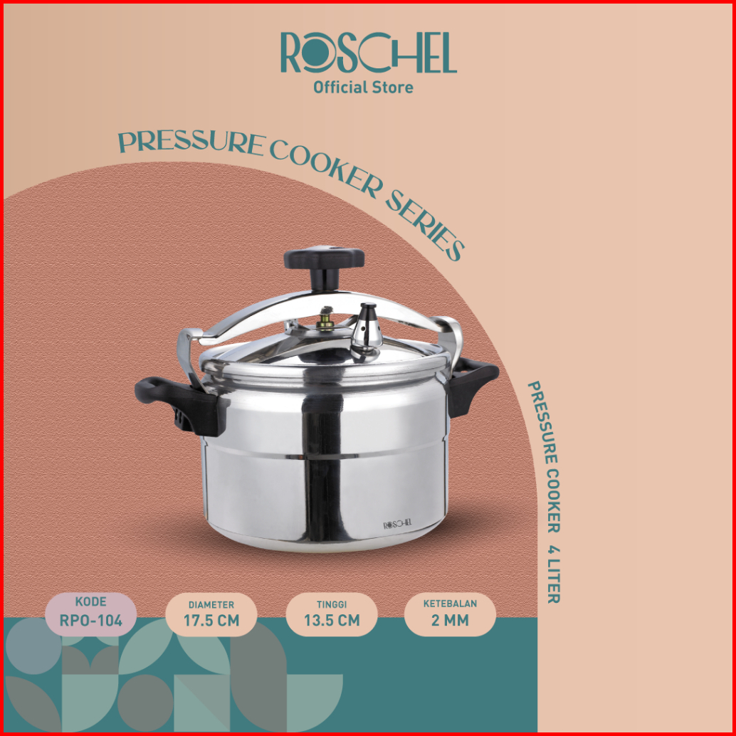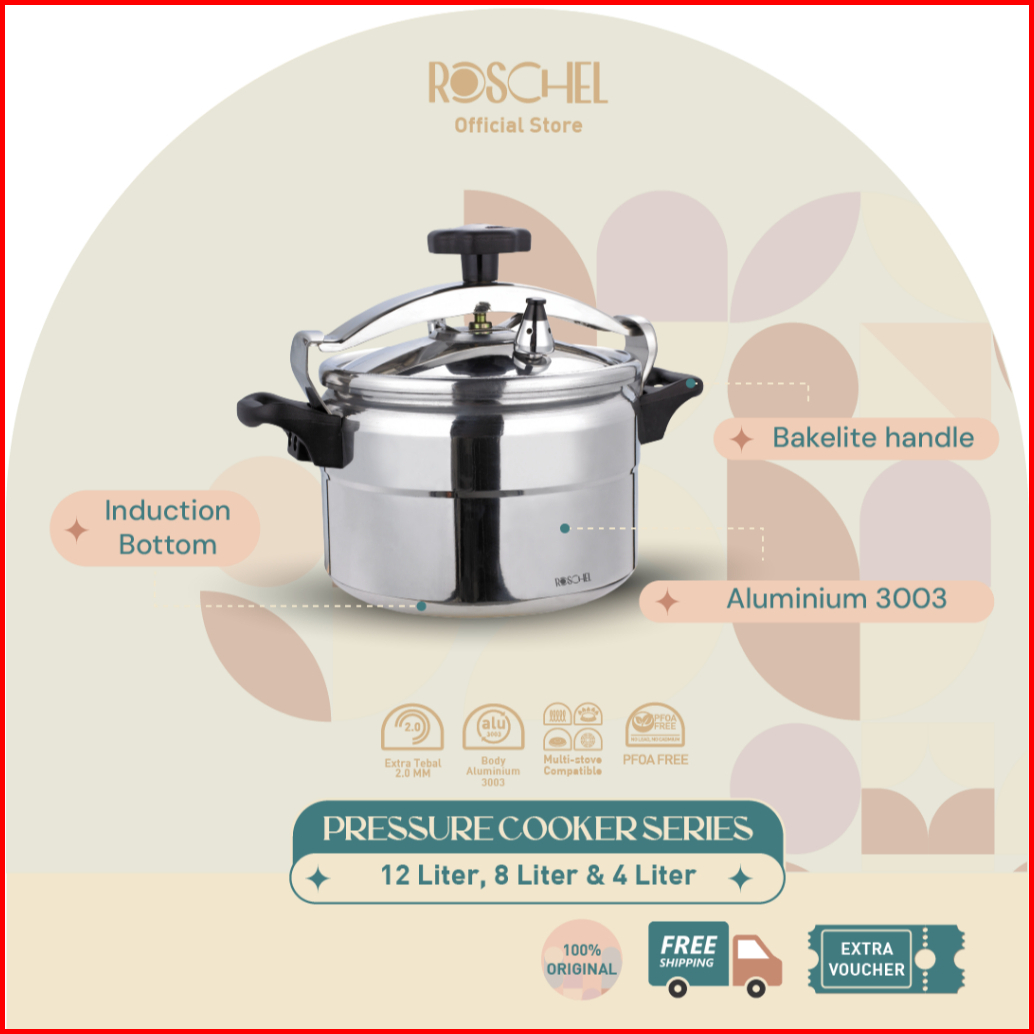 Roschel Pressure Cooker High Grade Aluminium 3003 Panci Presto 4 Liter 8 Liter 12 Liter Induksi Rpo-104 Rpo-108 Rpo-112