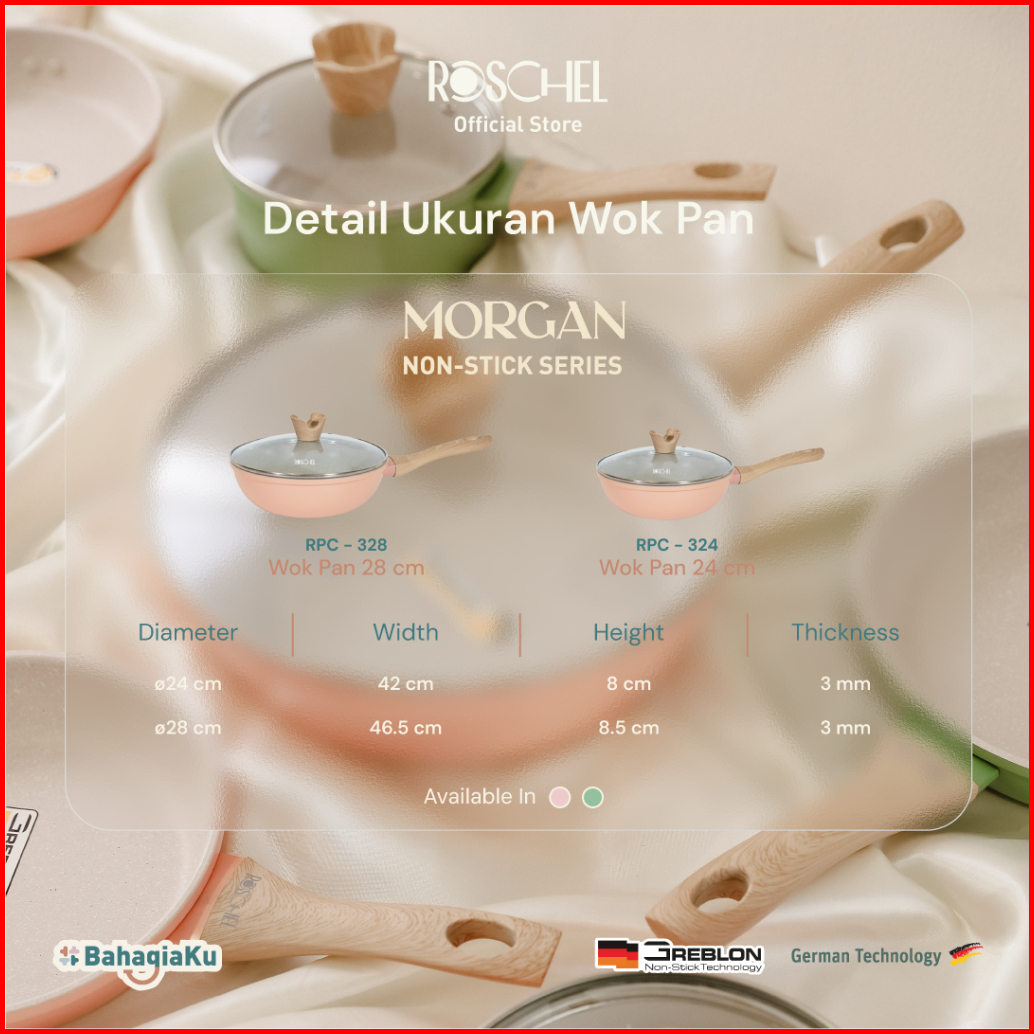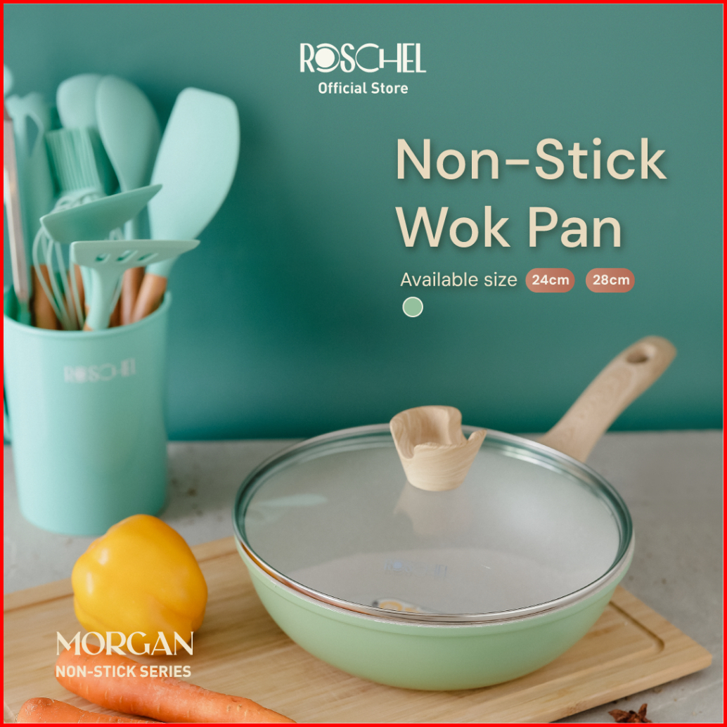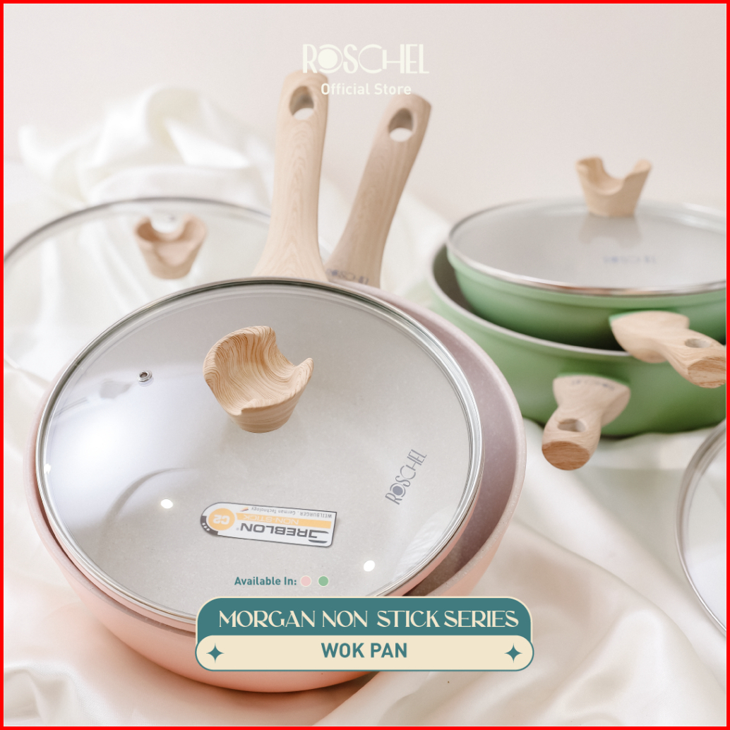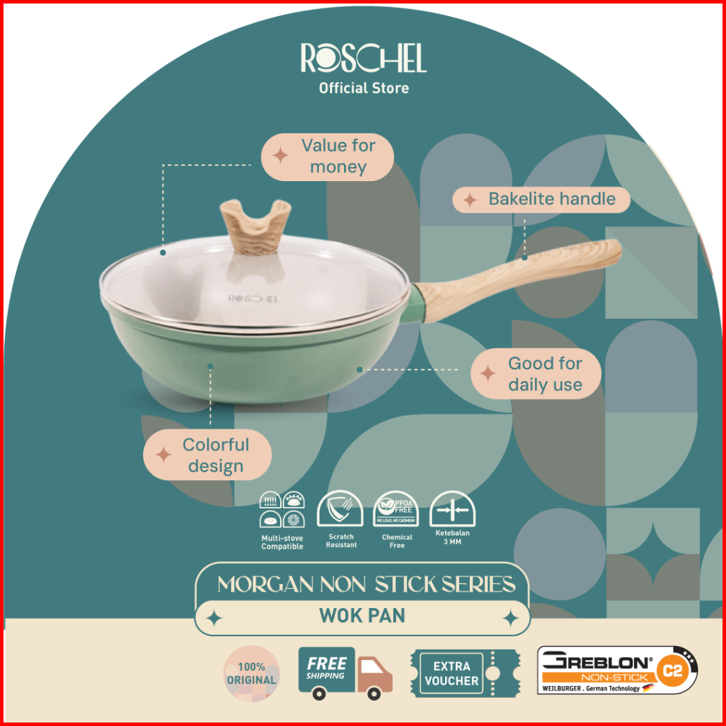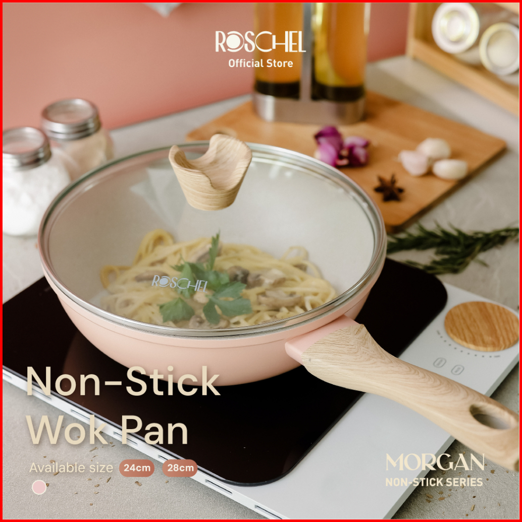 Roschel Morgan Non-stick Wok Pan 24 Cm 28 Cm Greblon C2 German Coating Panci Wajan Penggorengan Anti Lengket Induksi Pin