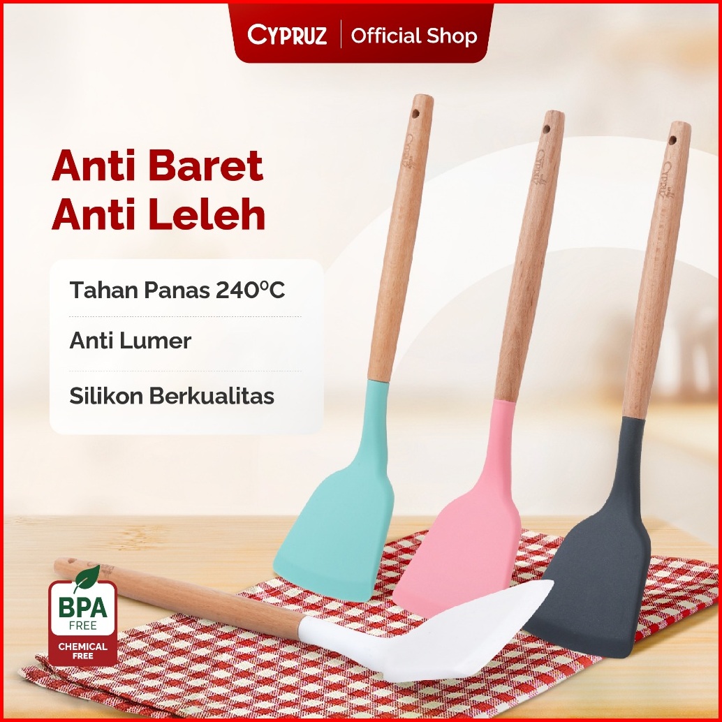 Cypruz Spatula Silikon Tahan Panas Anti Lumer Utensil Silicone Solid Turner Hijau