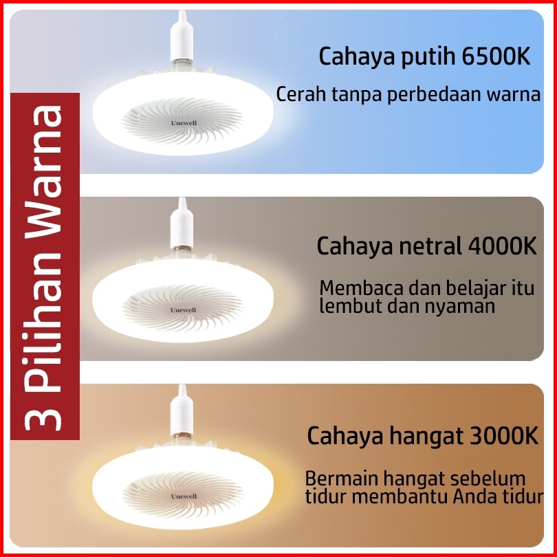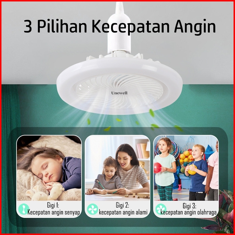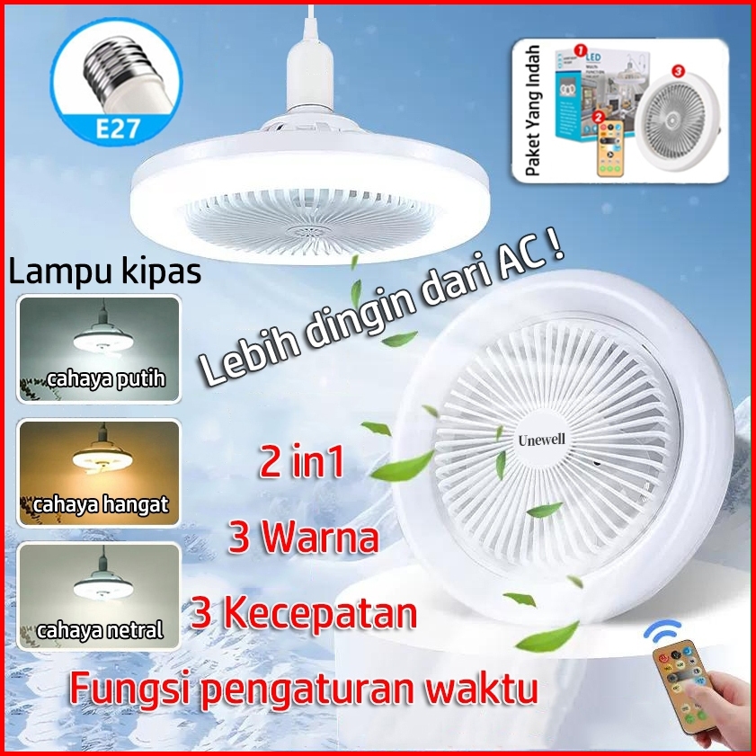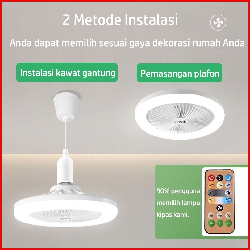 Unewell 2024 Lampu Kipas Angin Remote 2in1 30w Kipas Angin Plafon Fan Light Remote Control 3 Color