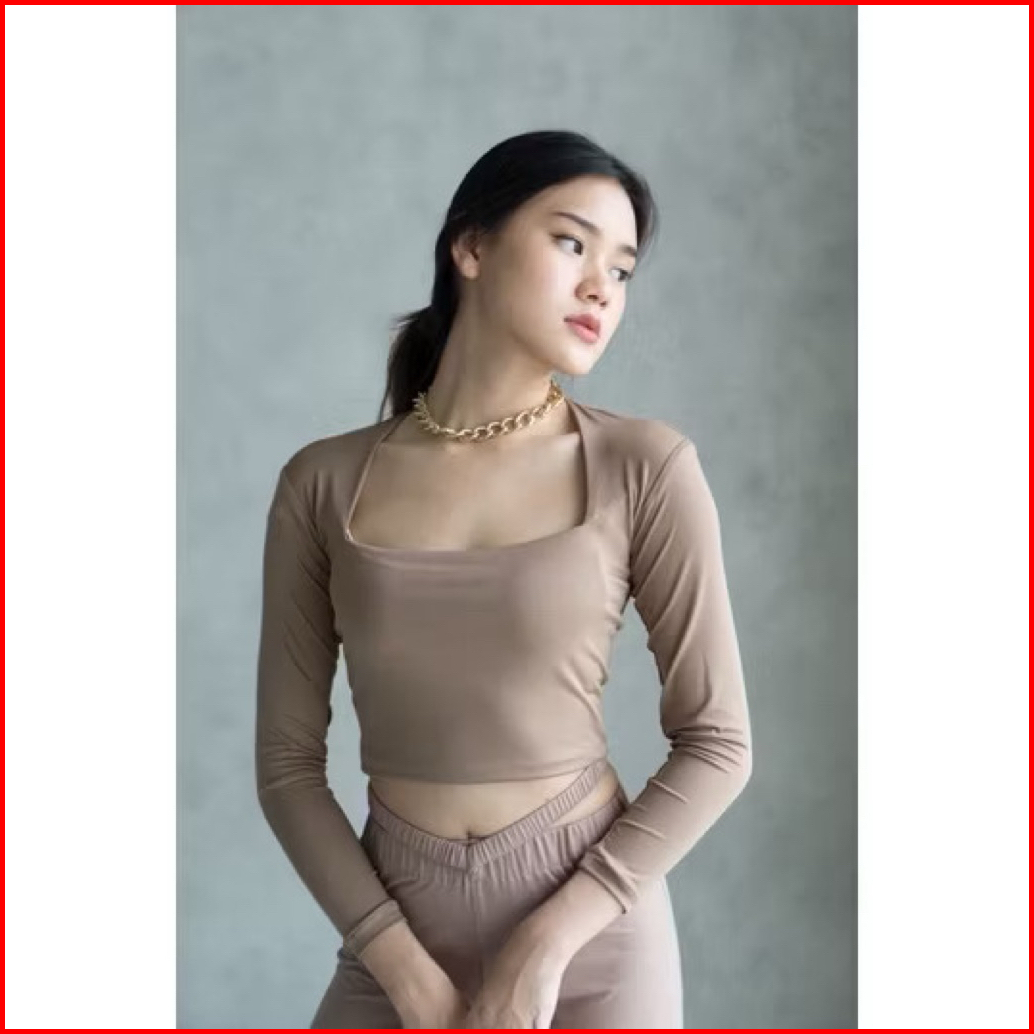 Kesha Crop Top Longsleeve Square Korean Style Baju Atasan Wanita Lengan Panjang Crop Tee Sabrina