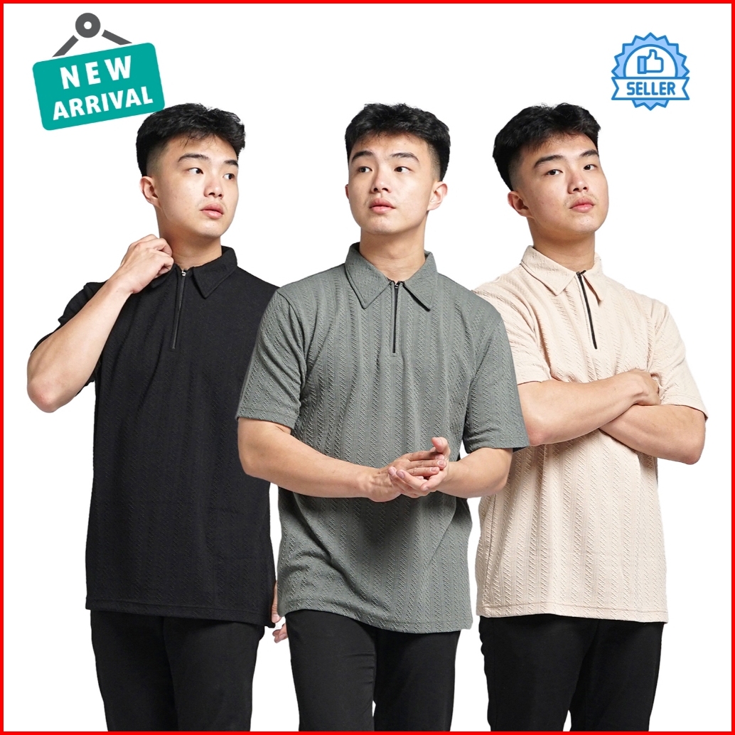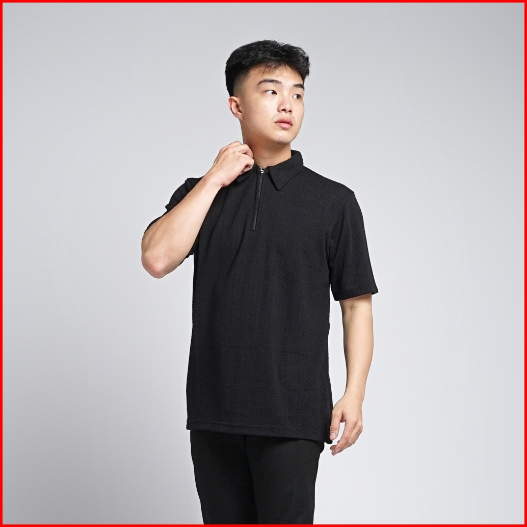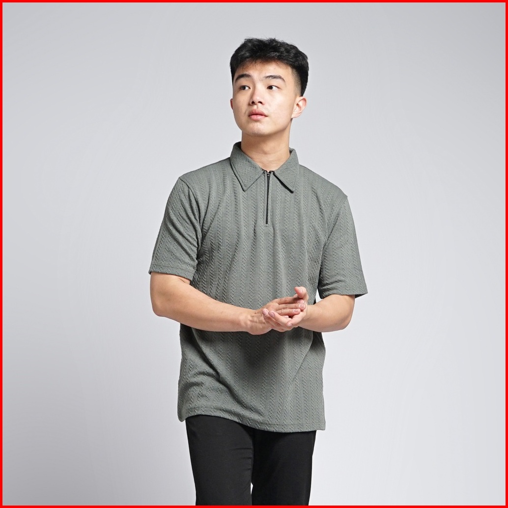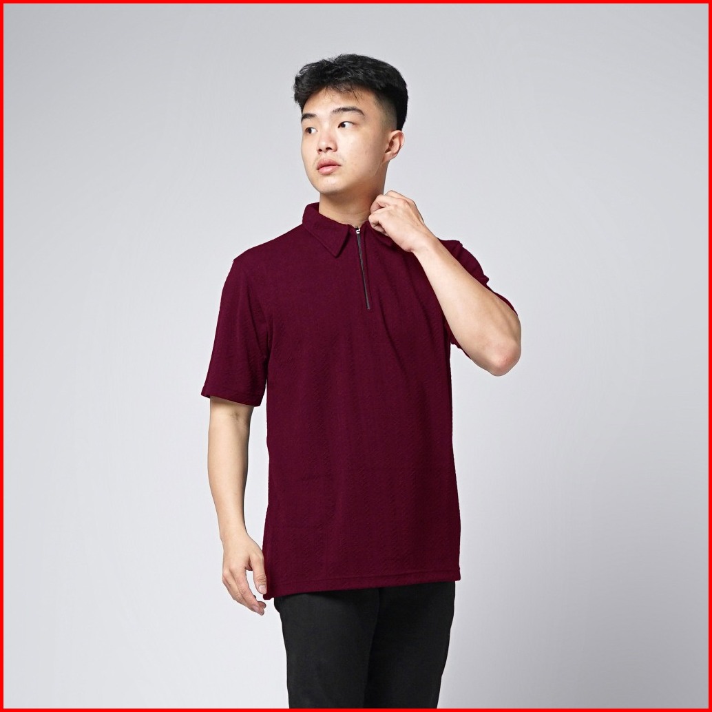 Kaos Pria Polo Shirt Zipper Knit Fabric Lengan Pendek