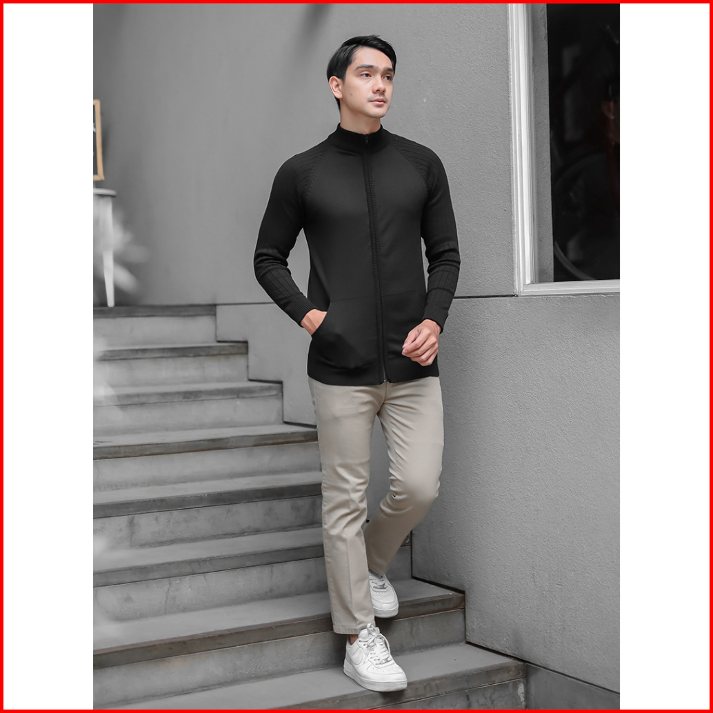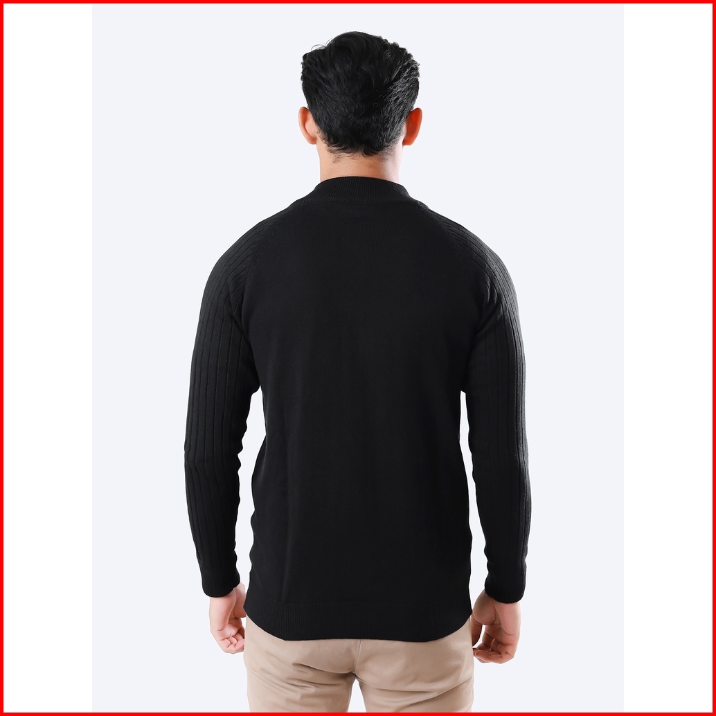 Gomuda Sweater Rajut Pria Sporty Full Zip - Black