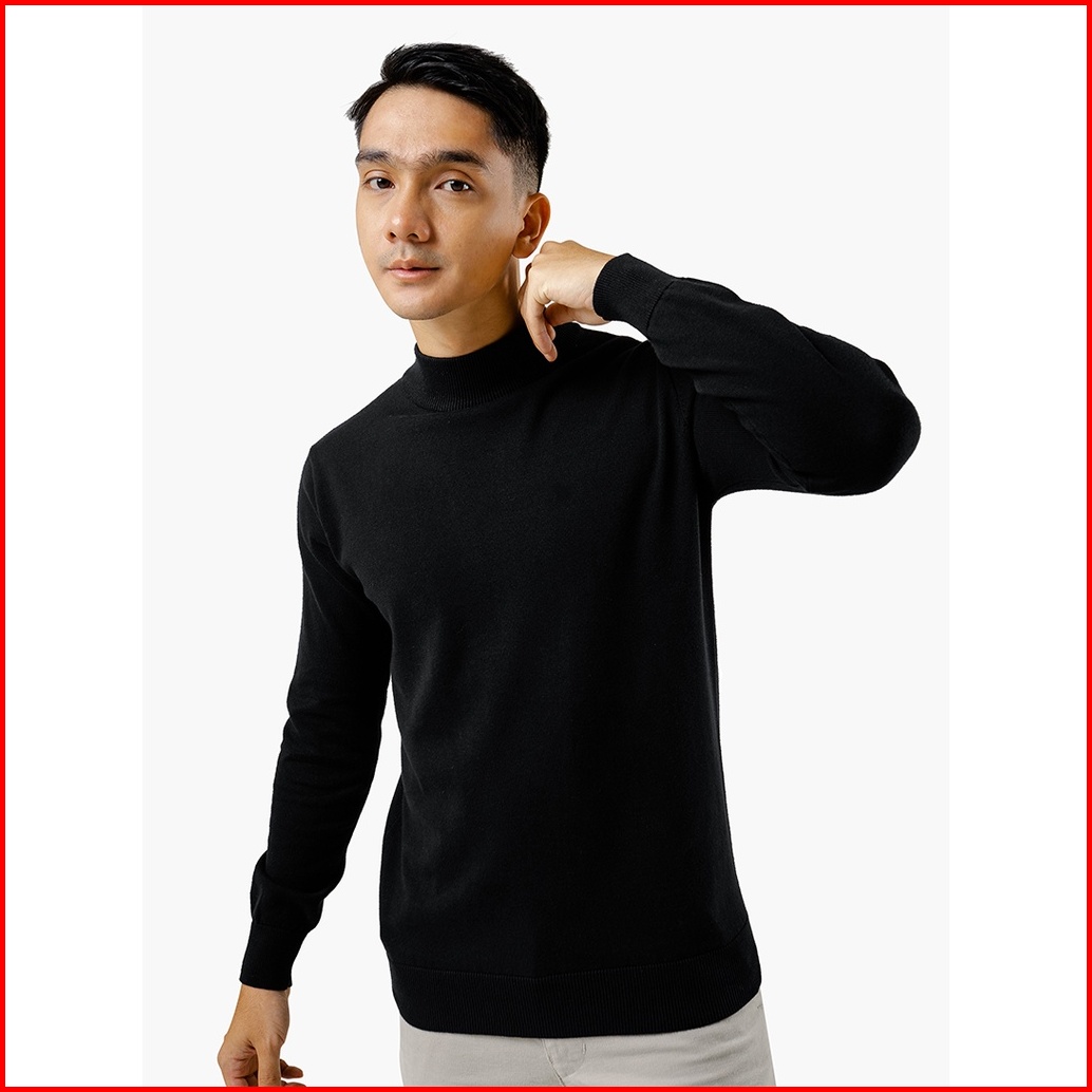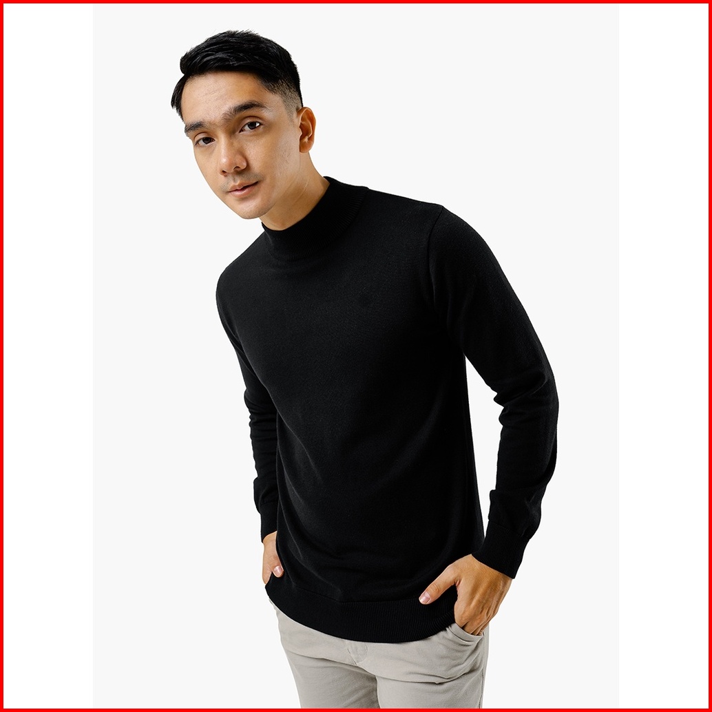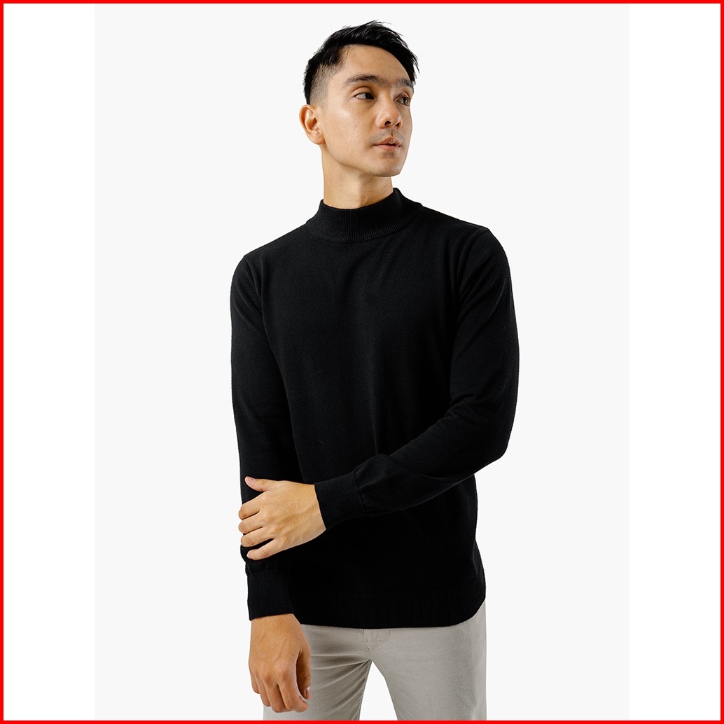 Gomuda Sweater Rajut Pria Mock Turtleneck - Black