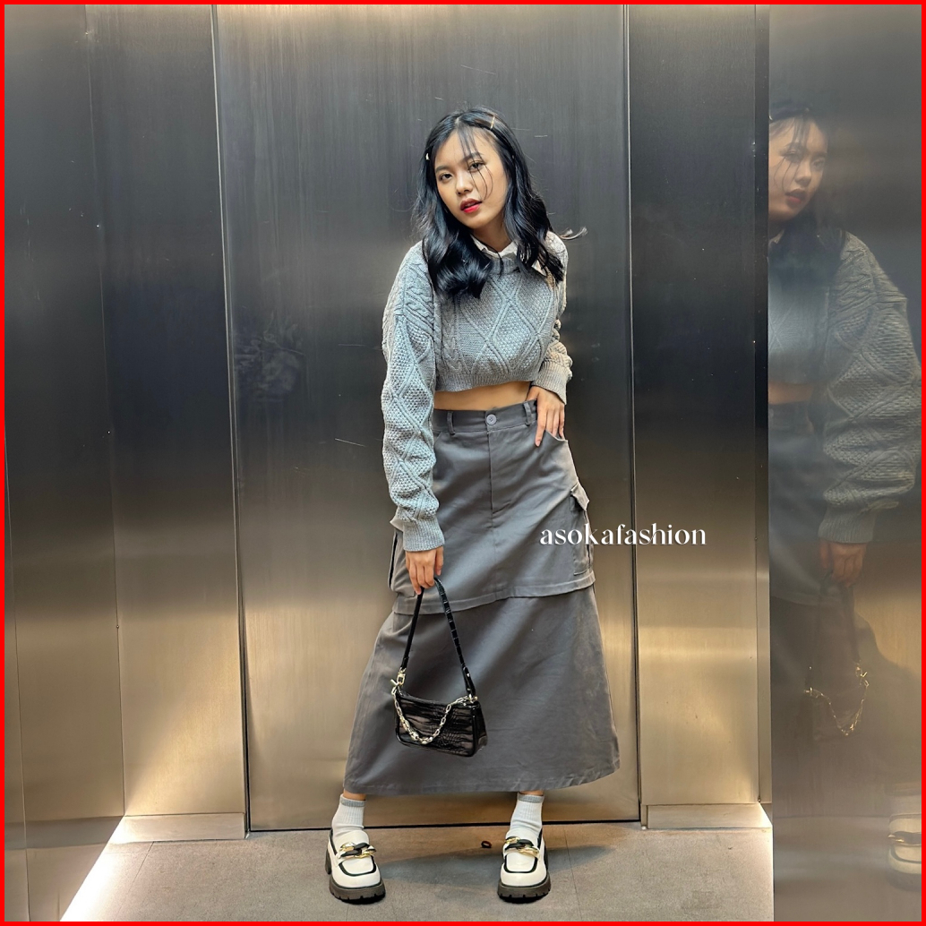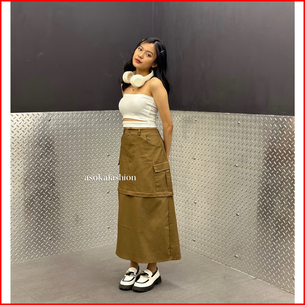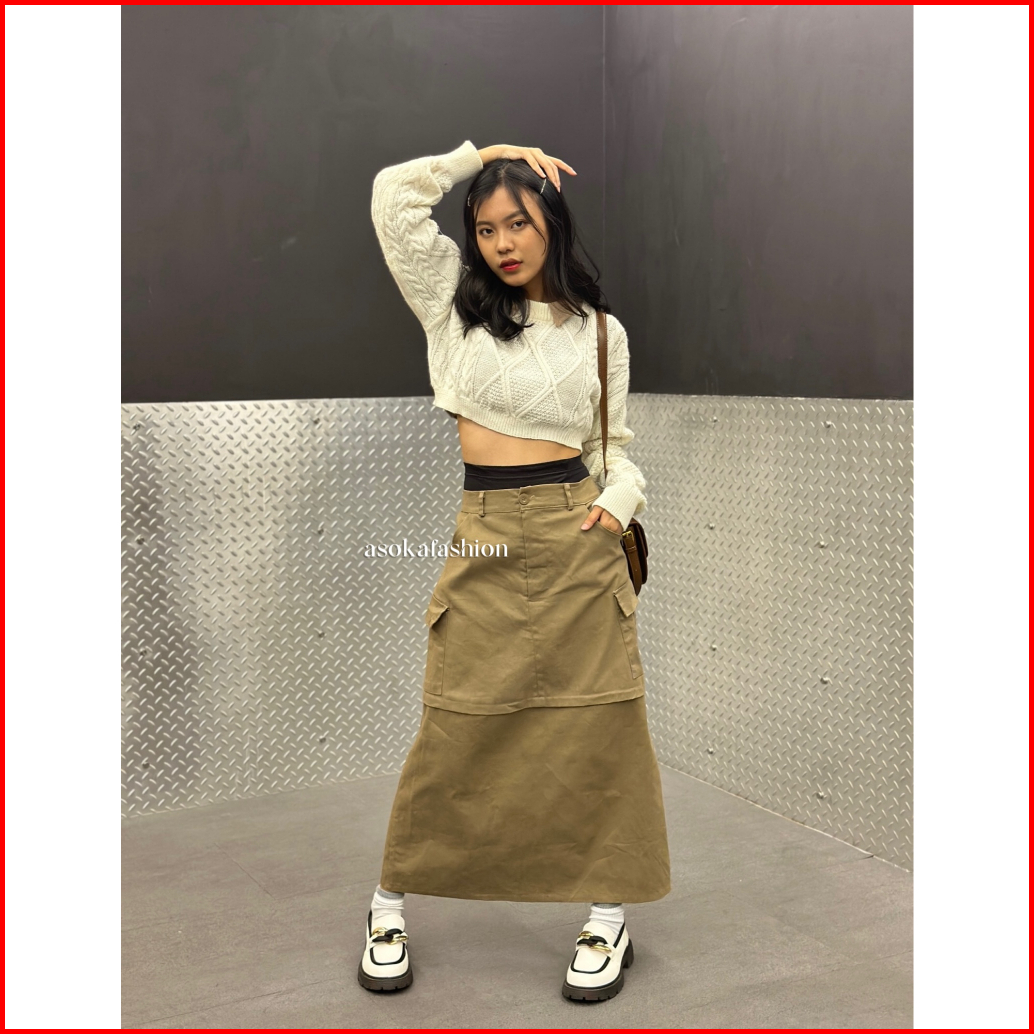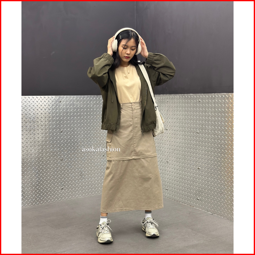 Asoka Jacob Skirt 2187 - Rok Cargo Bawahan Wanita - Casual A-line Skirt Chinos