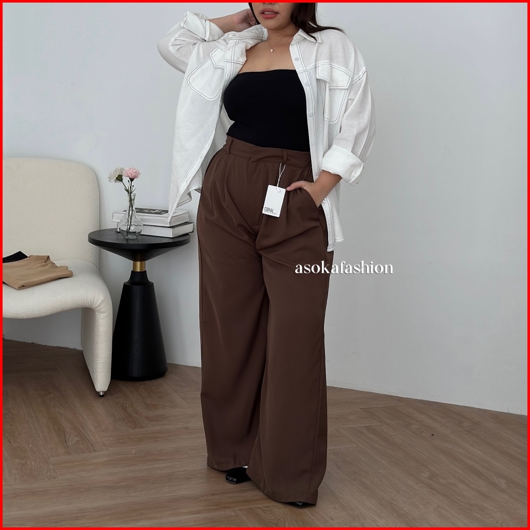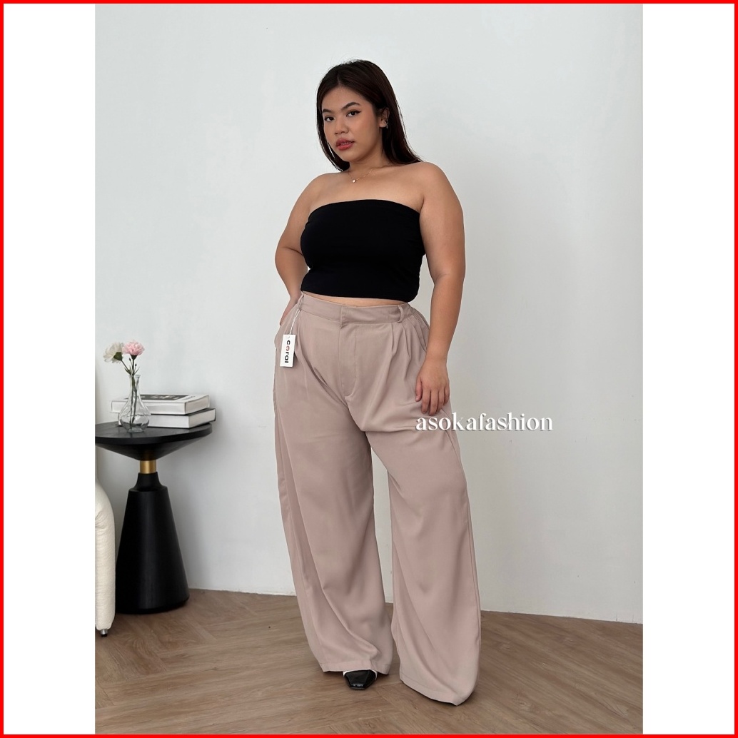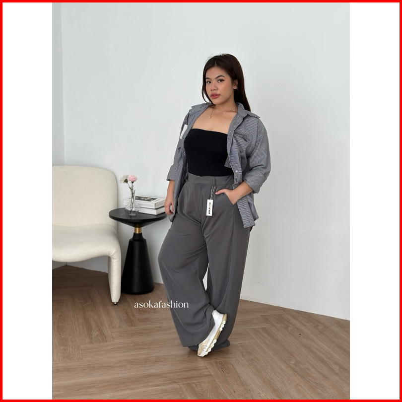 Asoka Adele - Loose Pants Jumbo 101 - Celana Kulot Panjang Wanita Bigsize - Trouser Highwaist Anti Kusut Kantor Formal