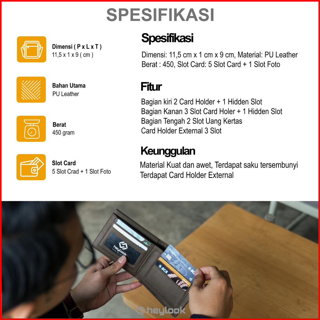 Heylook - Dompet Kulit Pendek Hampton 2.0 Dompet Pria Pendek Lipat Premium Distro