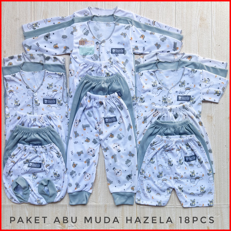 Hazela Abu Muda Series - 18 Pcs Paket Baju Bayi Kekinian Celana Bayi Setelan Bayi Baju Bayi Newborn Baju Bayi Baru Lahir
