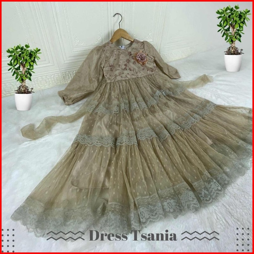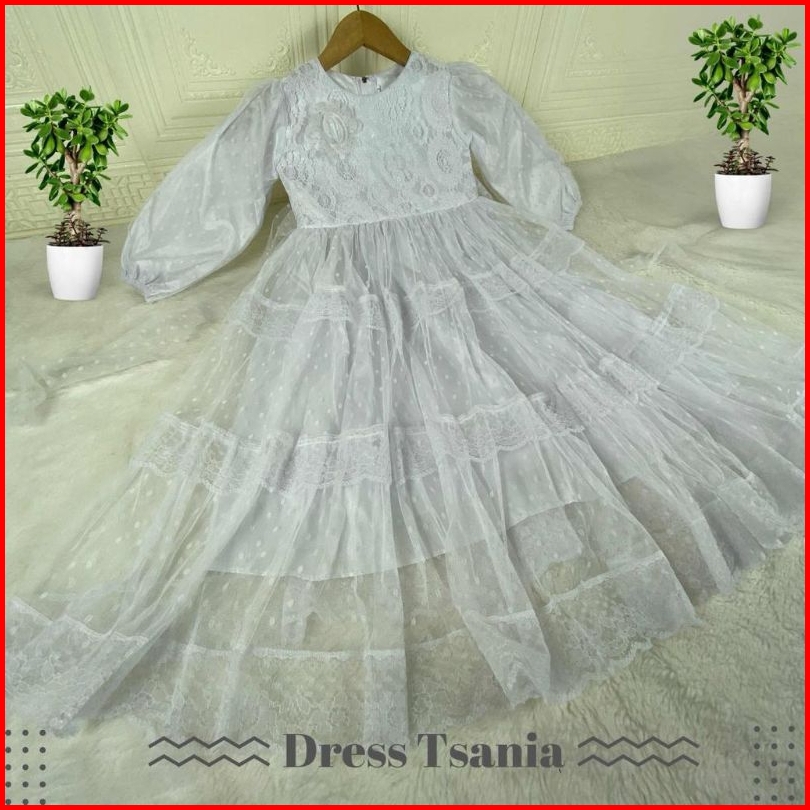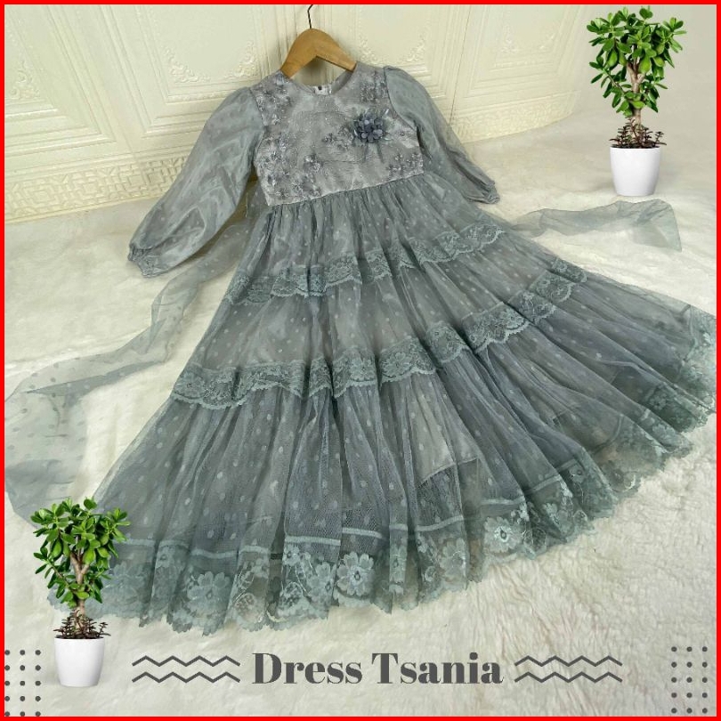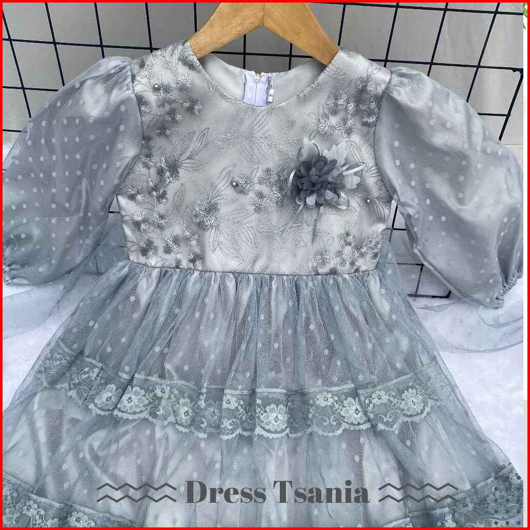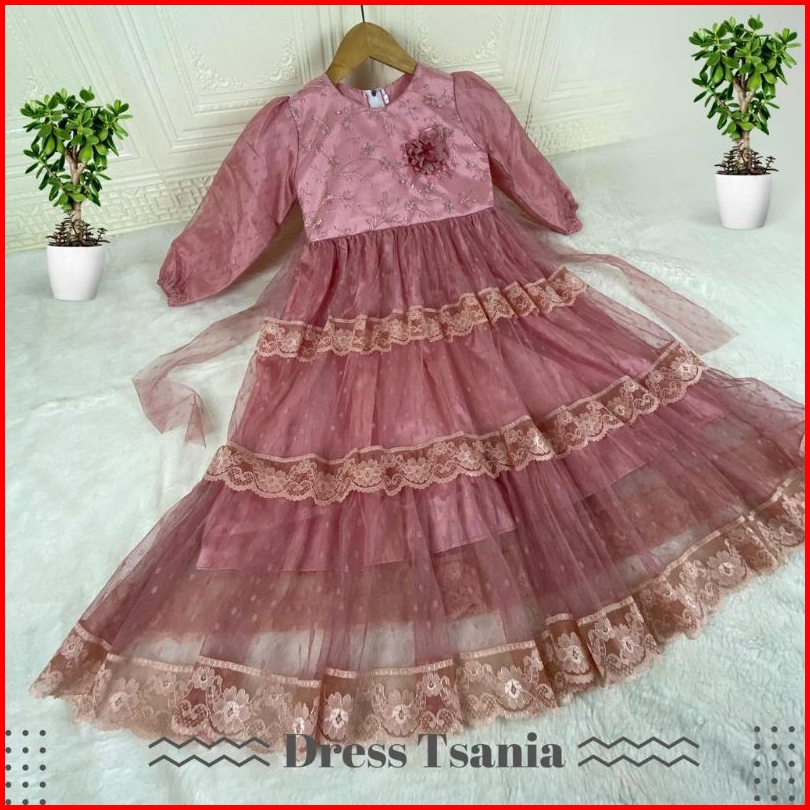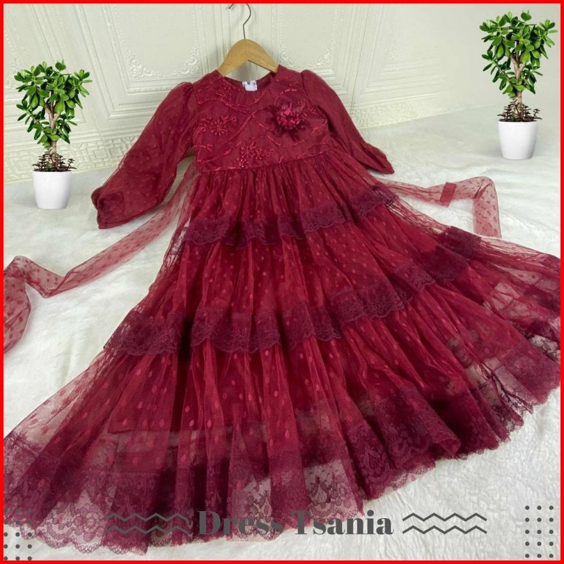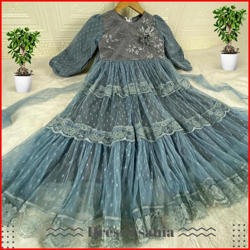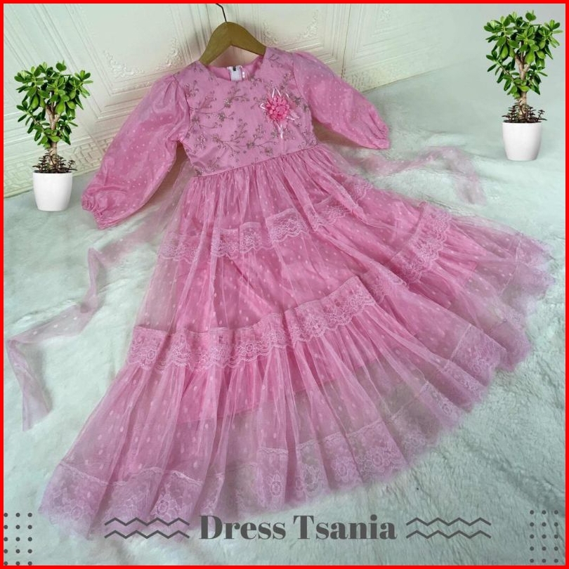Tsania Dress Gaun Pesta Muslim Anak Baju Muslim Anak Baju Pesta Anak Tangan Balon Tulle Polkadot