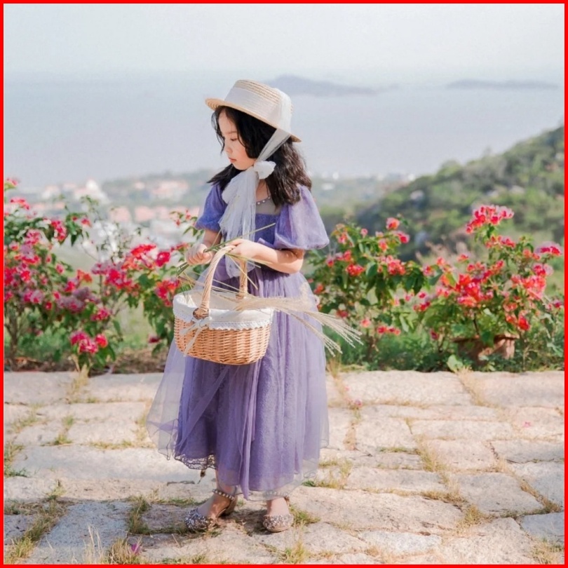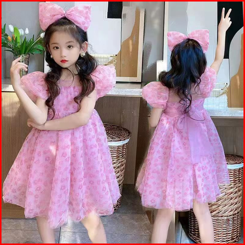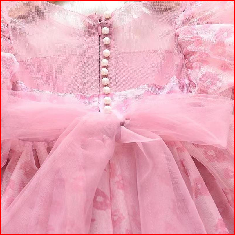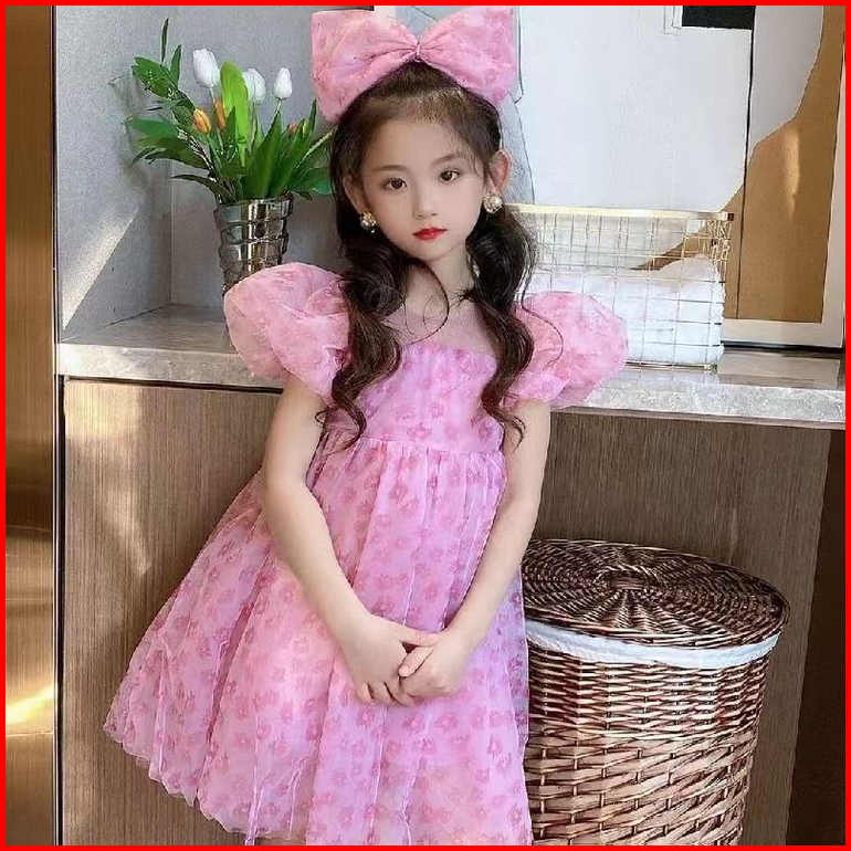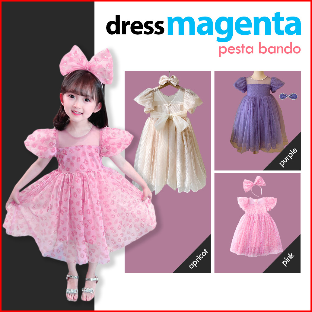 Princesscoco 1-9 Tahun Dress Pesta Magenta Bando Anak Perempuan Gaun Pita Party Ulang Tahun
