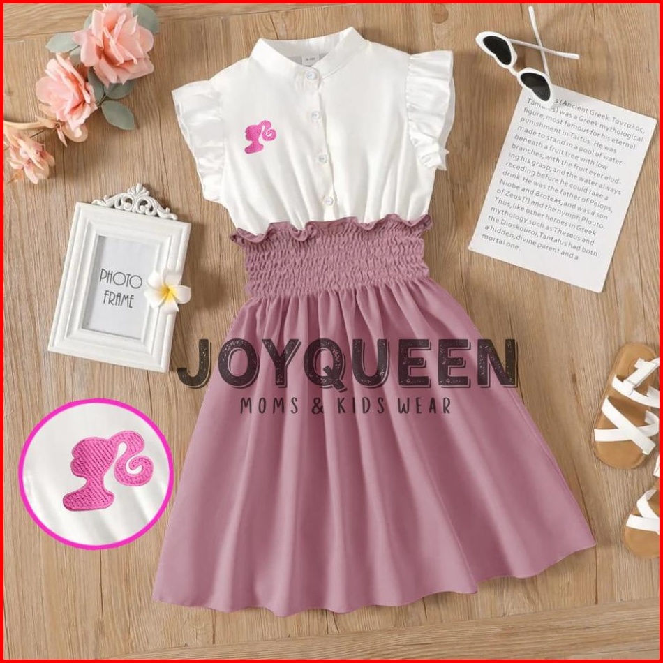 Dress Barbie Anak Perempuan Bordir Size Umur 1tahun - 8tahun