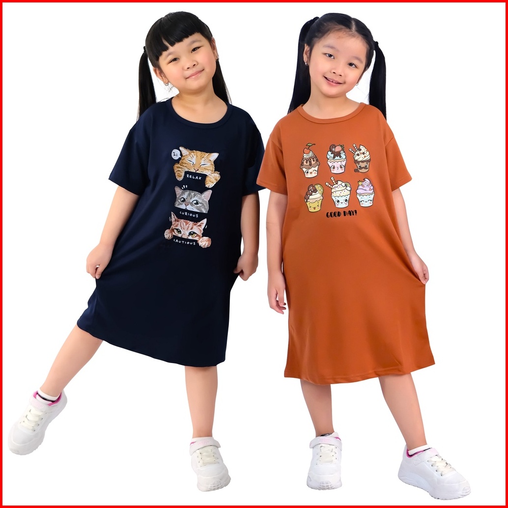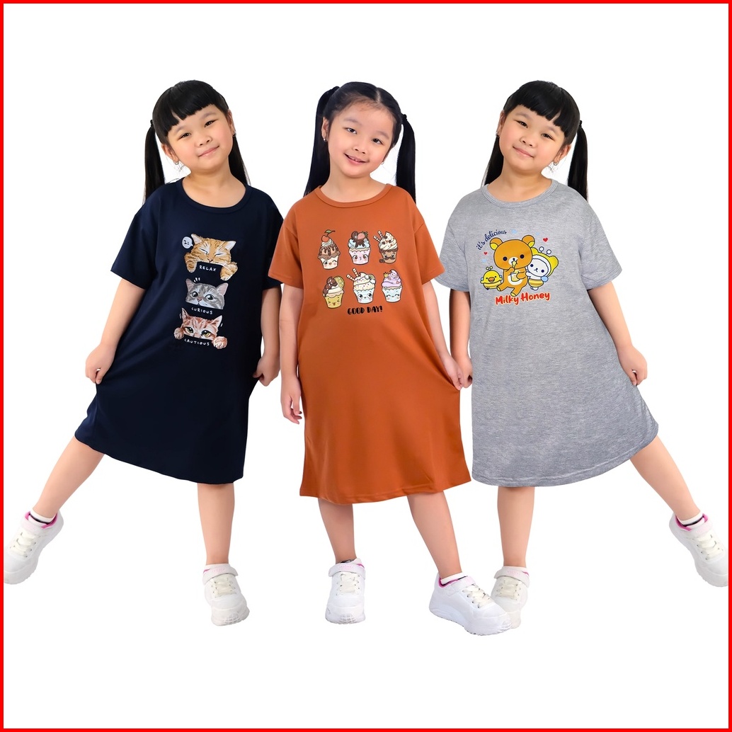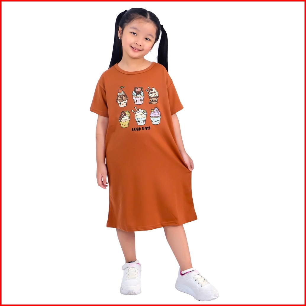 Dress Oversized Anak Perempuan Bahan Babyterry Usia 1 Tahun Sampai 12 Tahun Lovely Golden