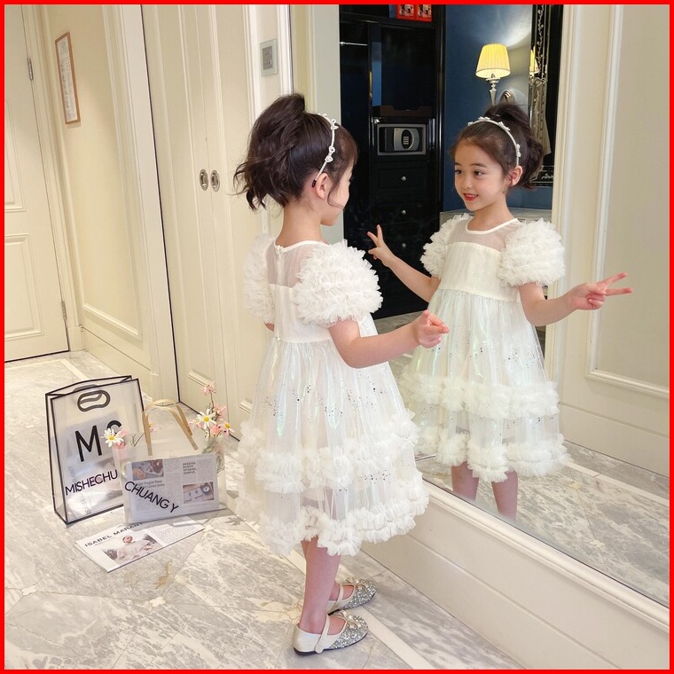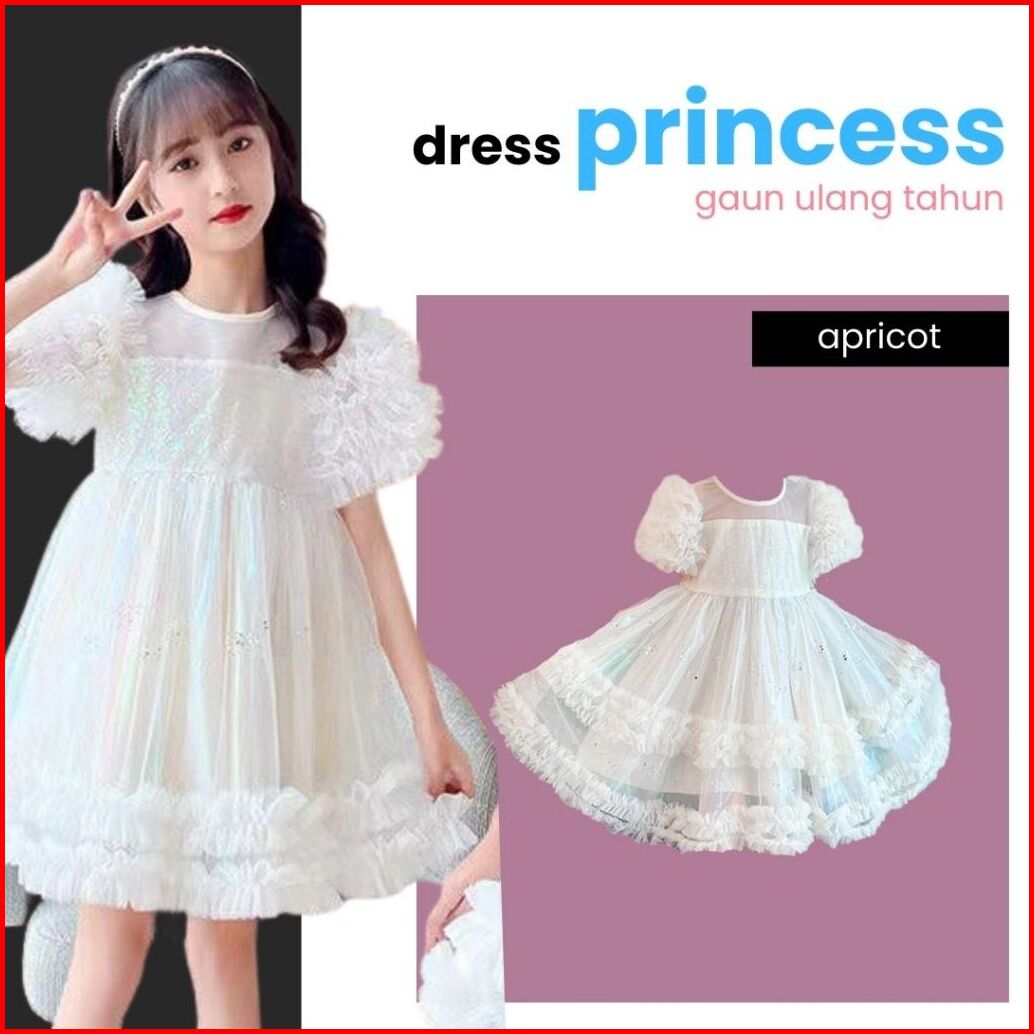 Princesscoco 1-12 Tahun Gaun Apricot Dress Pesta Anak Perempuan Party Bahan Tule Lembut