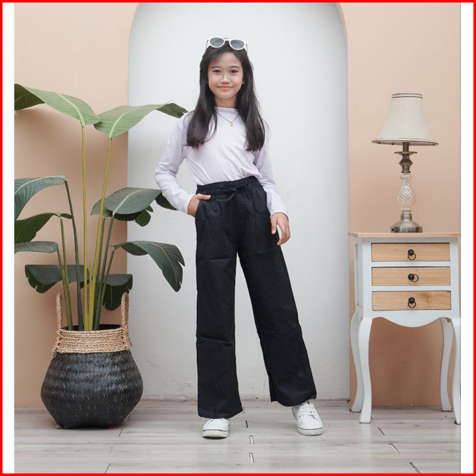 Kulot Anak Perempuan 12 Tahun Katun Linen Premium Pinggang Karet Tali Serut