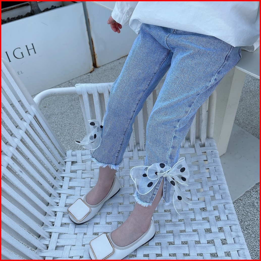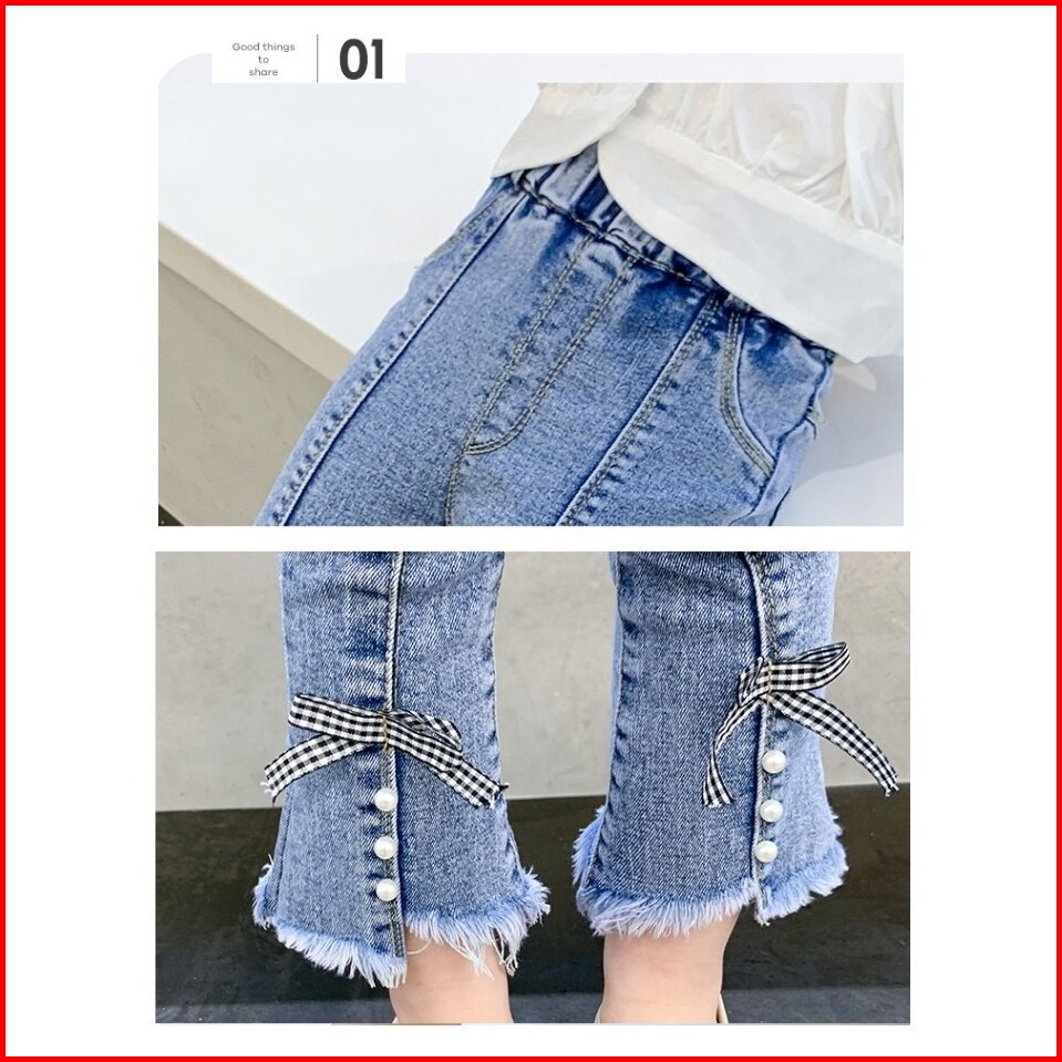 Celana Panjang Jeans Anak Perempuan Bisa Melar Dengan Aksesoris Lucu