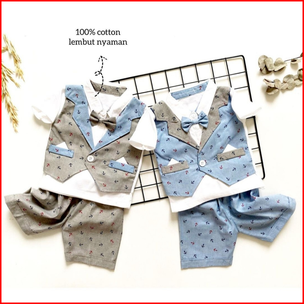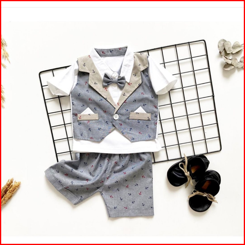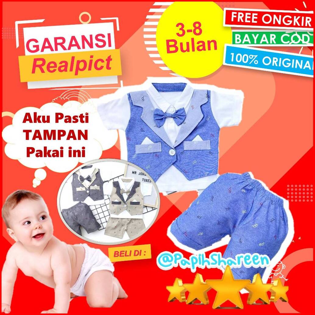 Baju Setelan Kemeja Bayi Laki Laki Cowok Newborn Import 0 6 12 Bulan 1 Tahun New Atwork