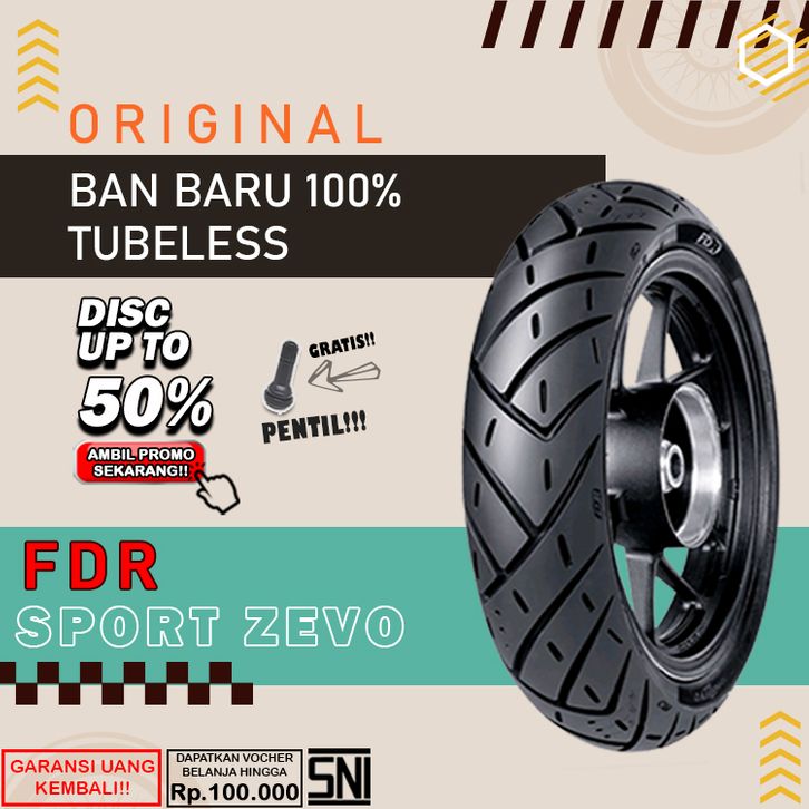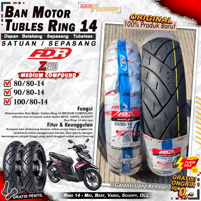 Ban Motor Matic Tubeless FDR Zevo Ring 14 Ban Motor Beat Vario Scoopy PCX Tubles Depan Belakang Sepasang Ring 14