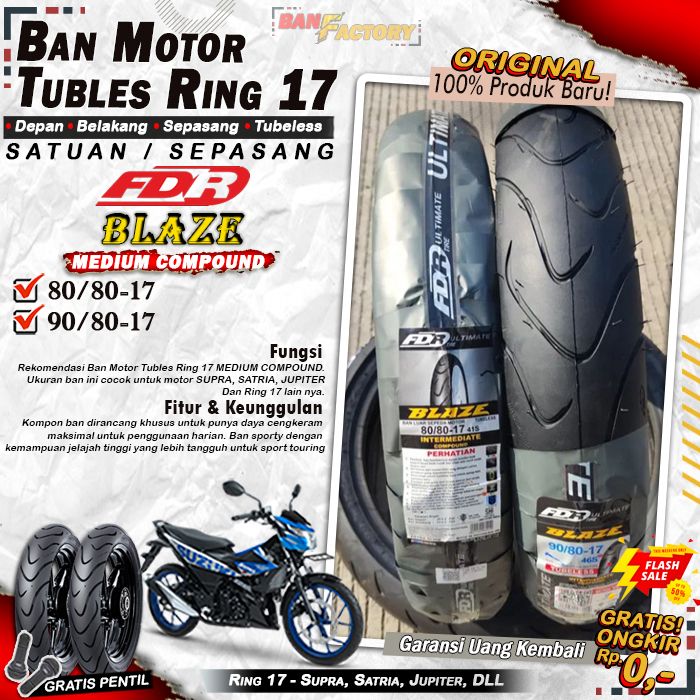 Ban Motor Tubeless FDR Blaze Ring 17 Ban Motor Vixion Ninja Supra Satria Tubles Depan Belakang Sepasang Ring 17