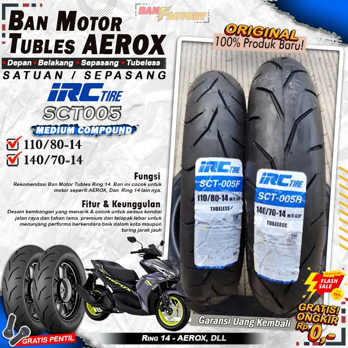 Ban Motor Matic Tubeless IRC SCT005F SCT005R Ring 14 Ban Motor Aerox Tubles Depan Belakang Sepasang Ring 14