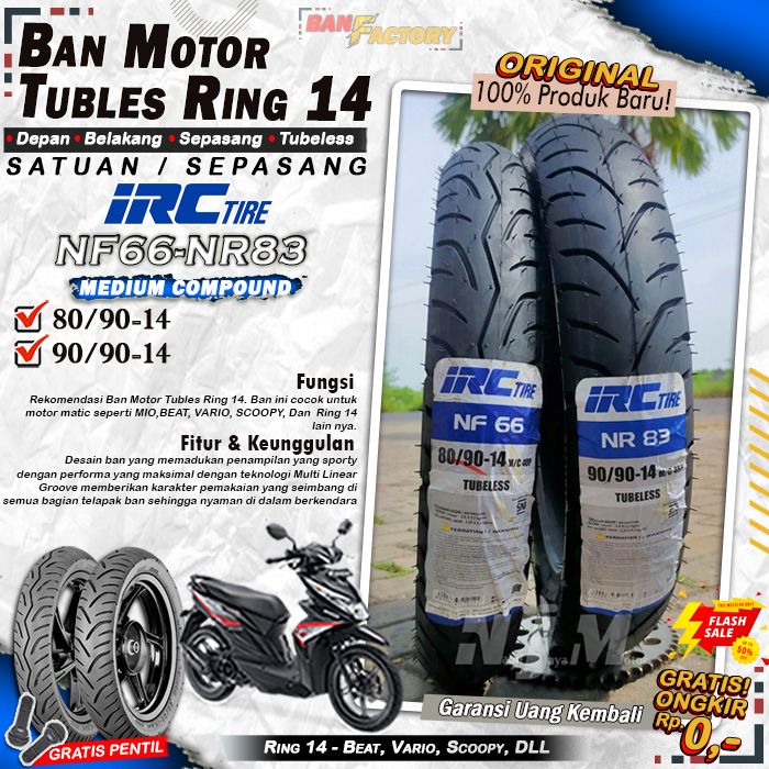 Ban Motor Matic Tubeless IRC NF66 NR83 Ring 14 Ban Motor Beat Vario Scoopy Tubles Depan Belakang Sepasang Ring 14