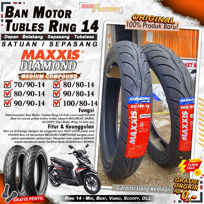 Sepasang Ban Motor Maxxis Diamond Ring 14 Tubles Ban Motor Matic Depan Belakang Beat Vario Scoopy Ring 14 Tubeless