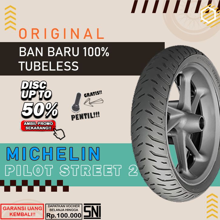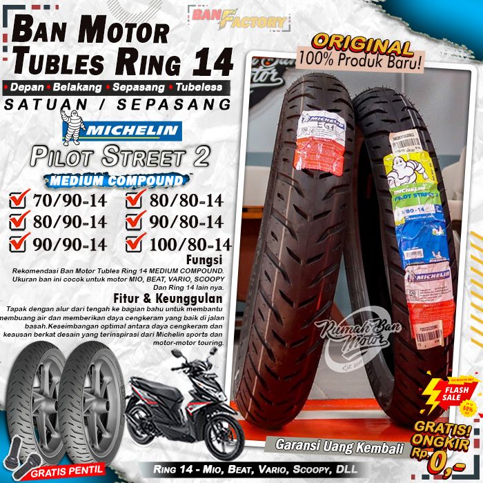 Ban Motor Matic Tubeless Michelin Pilot Street 2 Ring 14 Ban Motor Beat Vario Tubles Depan Belakang Sepasang Ring 14